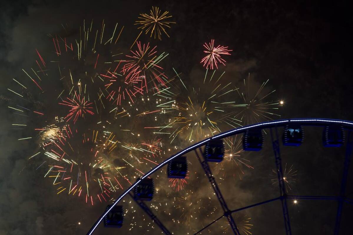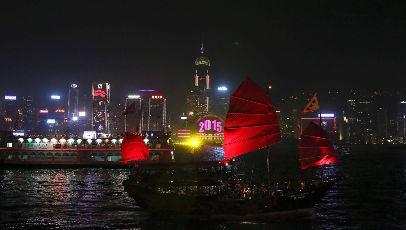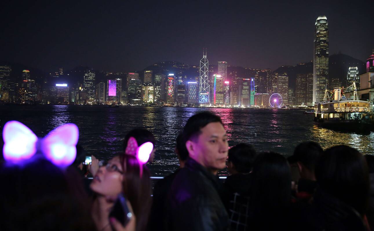 Honkonge šimtai tūkstančių žmonių buvo susirinkę miesto pėsčiųjų gatvėse pasižiūrėti aštuonias minutes trukusio pirotechnikos šou – po metų, kai judrias gatves mėnesius paralyžiavo demokratijos šalininkų protestai.