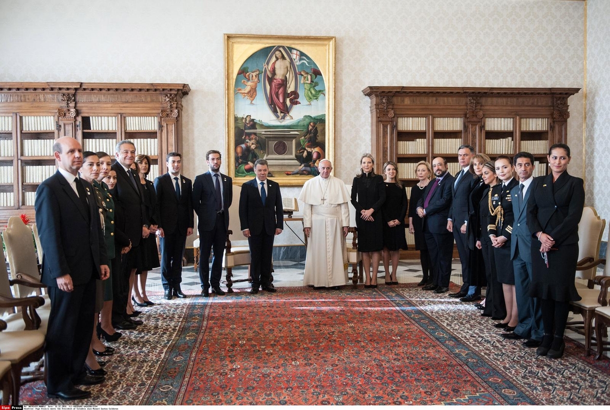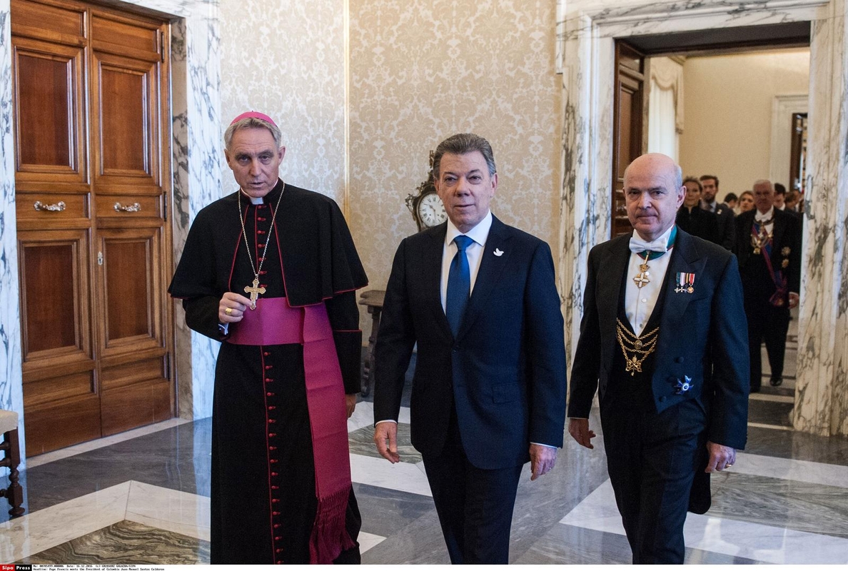 Nobelio taikos premiją šeštadienį Osle atsiėmusio Kolumbijos prezidento Juano Manuelio Santoso (Chuano Manuelio Santoso) dienotvarkėje penktadienio susitikimas su pontifiku buvo numatytas ir jis įvyko kaip buvo planuota.