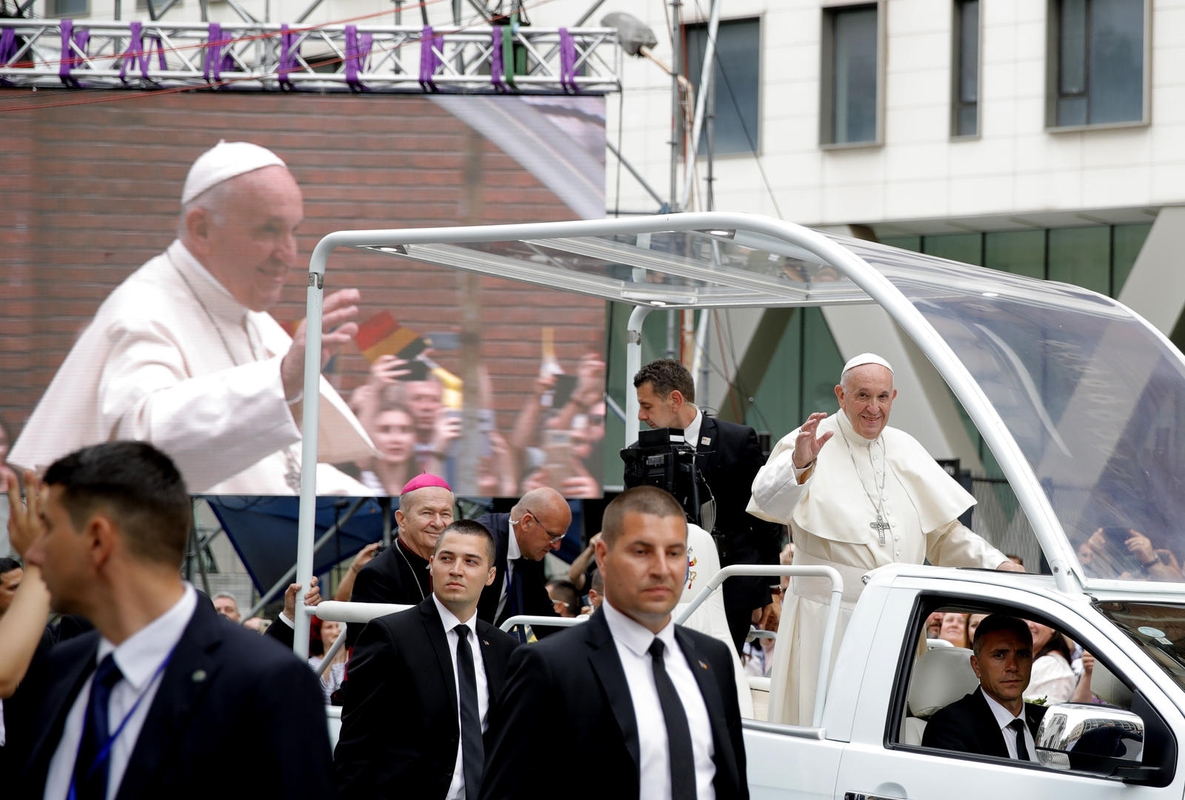 Tūkstančiai žmonių Bukarešto alėjose džiaugsmingai šaukė, mojavo ir fotografavosi, kai pontifikas važiavo pro šalį savuoju papamobiliu.