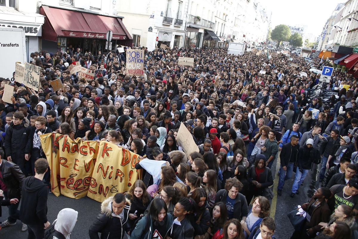 Ketvirtadienį moksleiviai žygiavo Paryžiaus gatvėmis, užtverdami įėjimus į kelias mokyklas ir trukdydami kitų institucijų darbui.