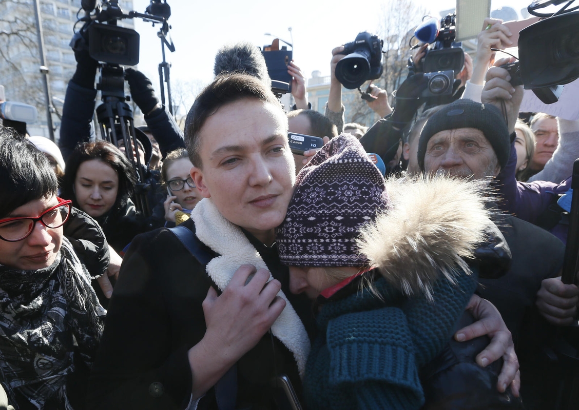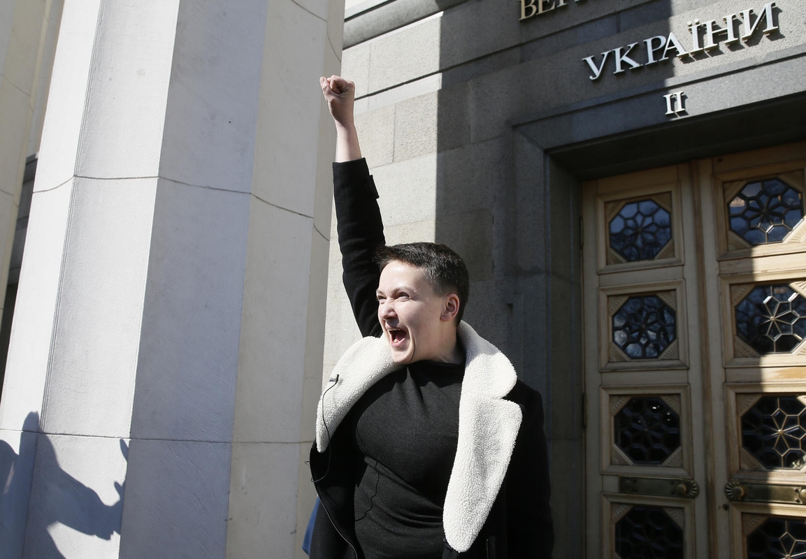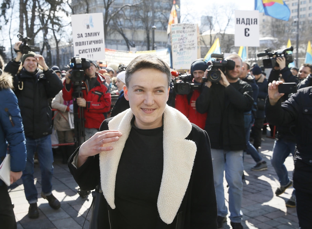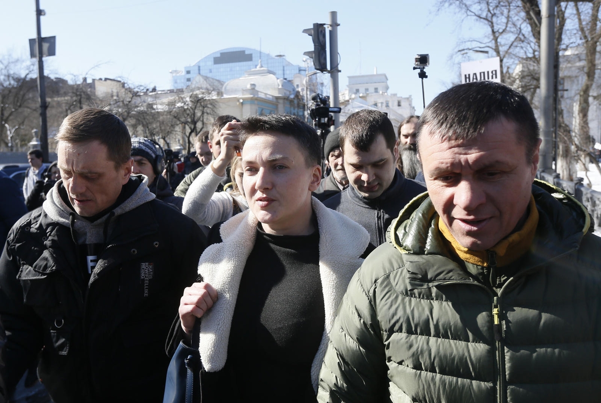 Pranešama, kad tyrėjų, žurnalistų, kelių šalininkų ir sesers lydima N. Savčenko iš Aukščiausiosios Rados išėjo į netoliese esančią Ukrainos saugumo tarnybą.