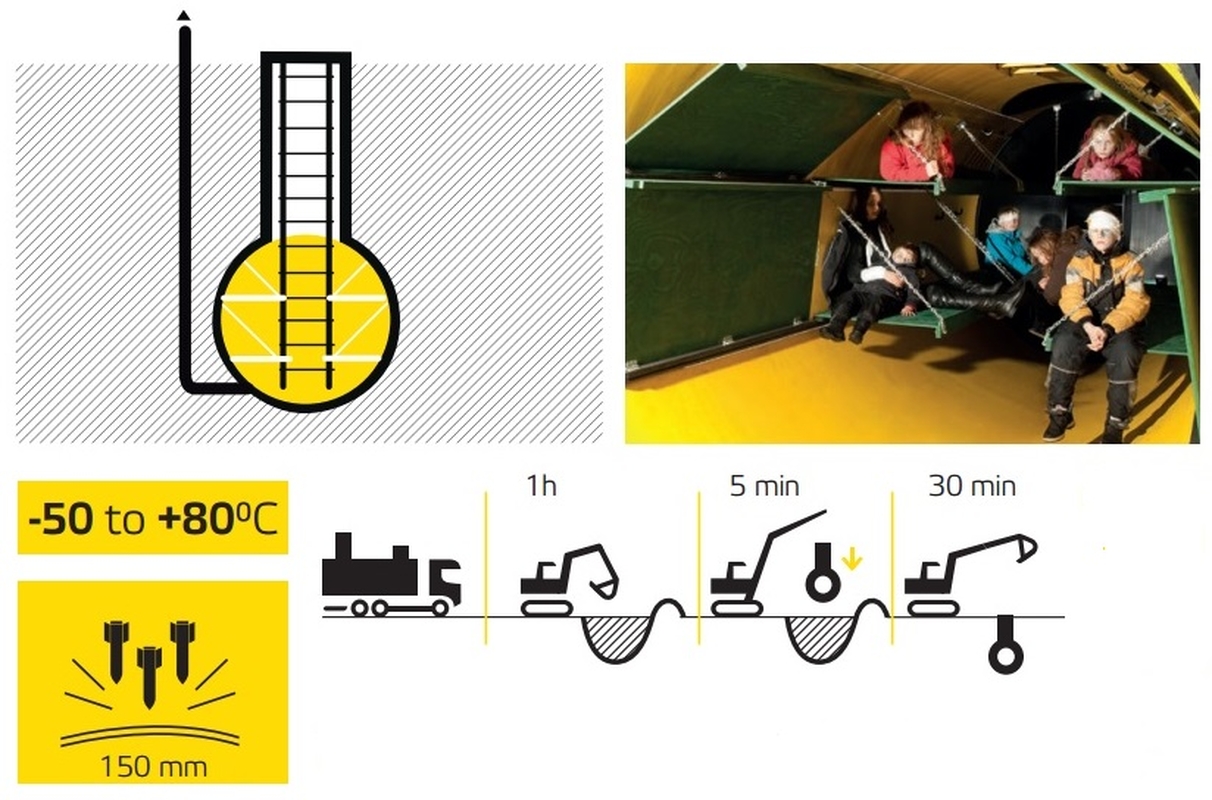 Estijos karinių technologijų bendrovė „Terramil OU“ išrado vandens nepraleidžiančią požeminę slėptuvę nuo bombų, kuri galėtų būti naudojama ištisam požeminiam miesteliui sukurti.