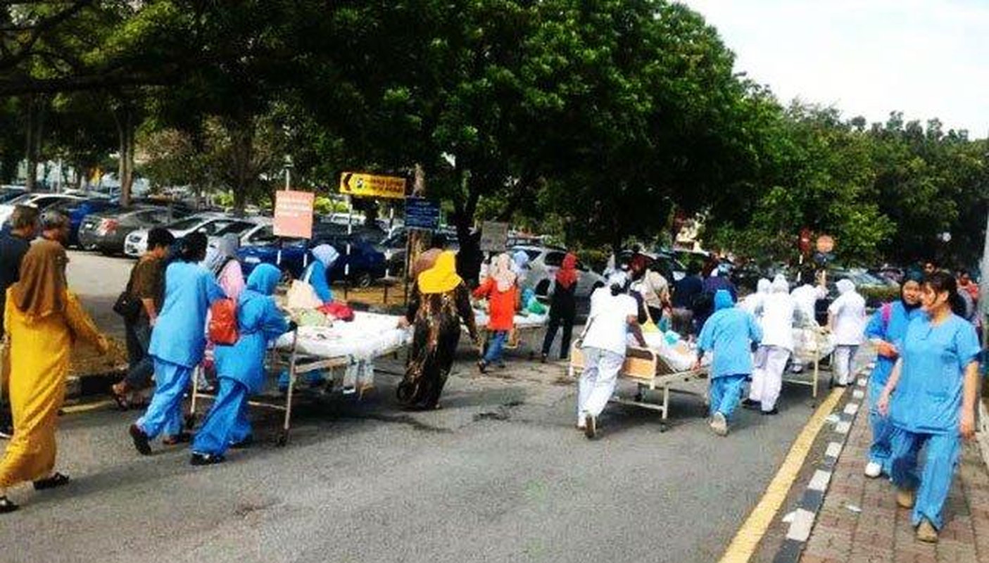 Nuotraukose, kurias feisbuke paskelbė Malaizijos sveikatos apsaugos ministerijos generalinis direktorius Nooras Hishamas Abdullah (Nuras Hišamas Abdula), matyti juodi dūmai, sklindantys iš ligoninės antrojo aukšto, ir siaučiančios liepsnos pastato viduje.