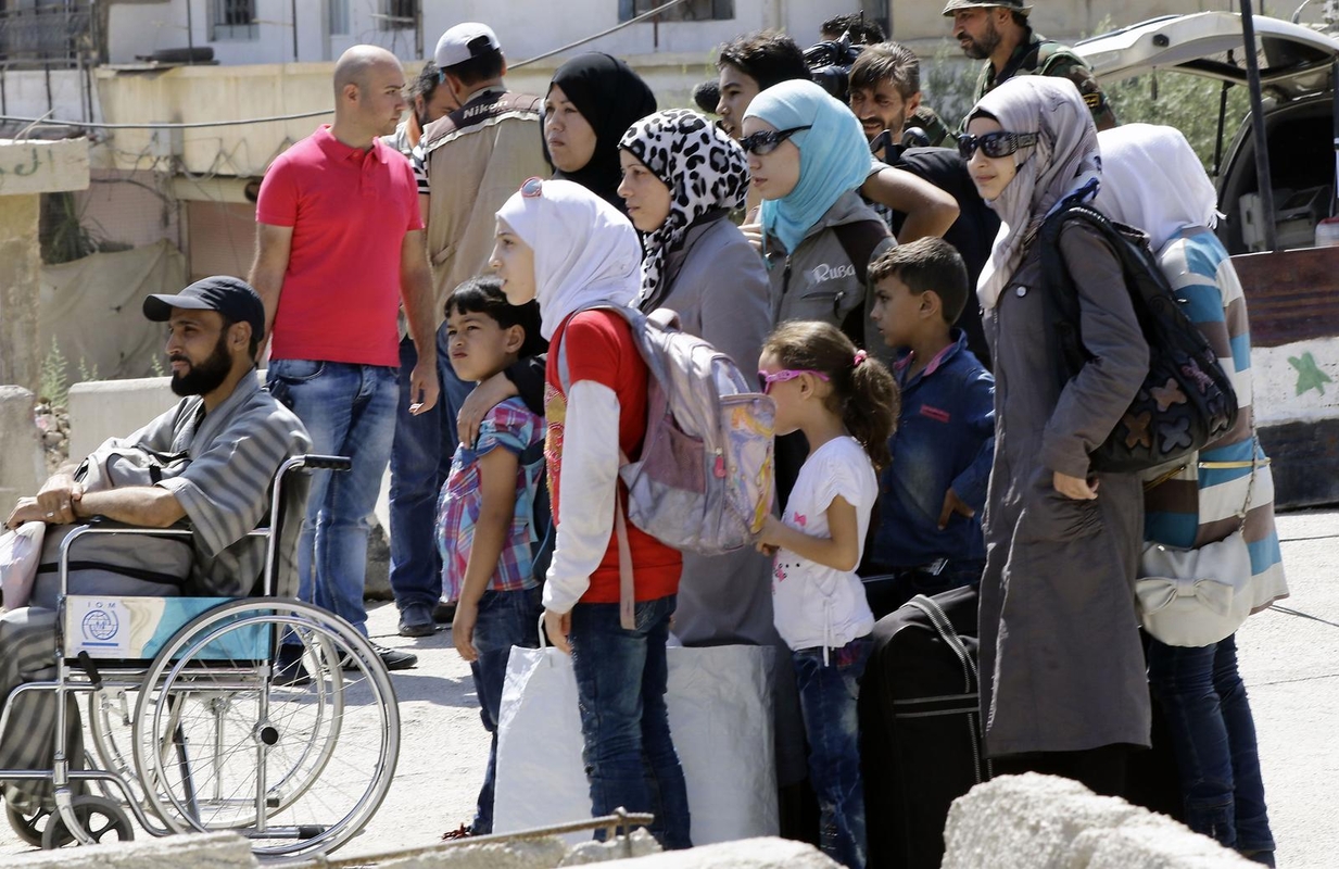 Besievakuojantys gyventojai pėsčiomis atėjo iki Muadimajat al Šamo rajono pakraščio, kur jų laukė aštuoni autobusai, turėję nuvežti į pabėgėlių priėmimo centrus Damasko provincijoje, pranešė naujienų agentūros AFP fotografas.