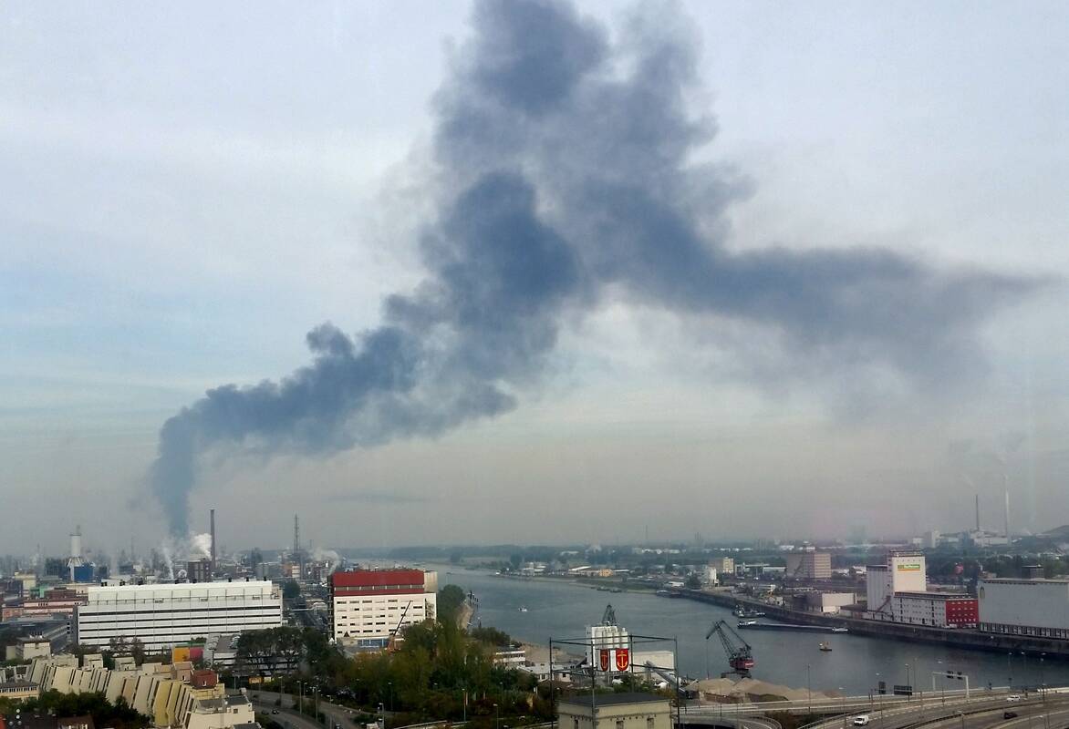 Virš didžiulio prie Reino upės esančio komplekso buvo matyti didžiulės liepsnos ir kylantys pilkų dūmų kamuoliai.