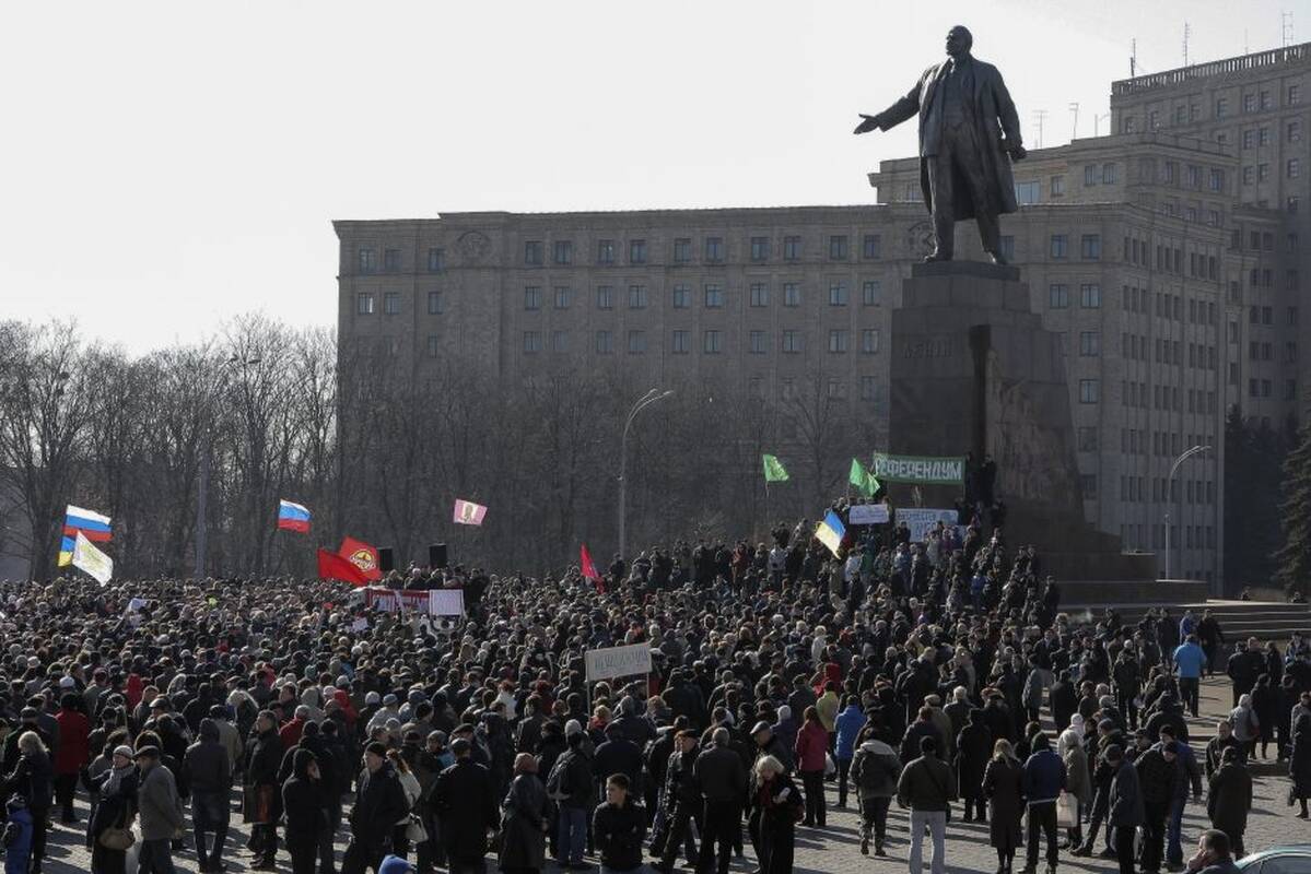 Naujausia prorusiškų nuotaikų demonstracija Ukrainos pietryčių regione, kuriame dauguma gyventojų yra rusakalbiai, organizuojama po to, kai penktadienį Maskva pagrasino nutraukti dujų tiekimą Ukrainai, Vakarų šalims paskelbus sankcijas, kuriomis siekiama nubausti Kremlių už faktinę Krymo okupaciją.