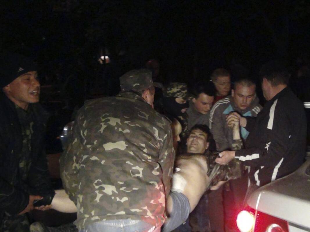 Kaip praneša Ukrainos žiniasklaida, prie karinio dalinio kareivinių susirinkę žmonės reikalavo, kad kariai „pasidalytų su jais ginklais“, o vėliau pradėjo mėtyti butelius su degiu skysčiu ir padegė policijos mikroautobusą.
