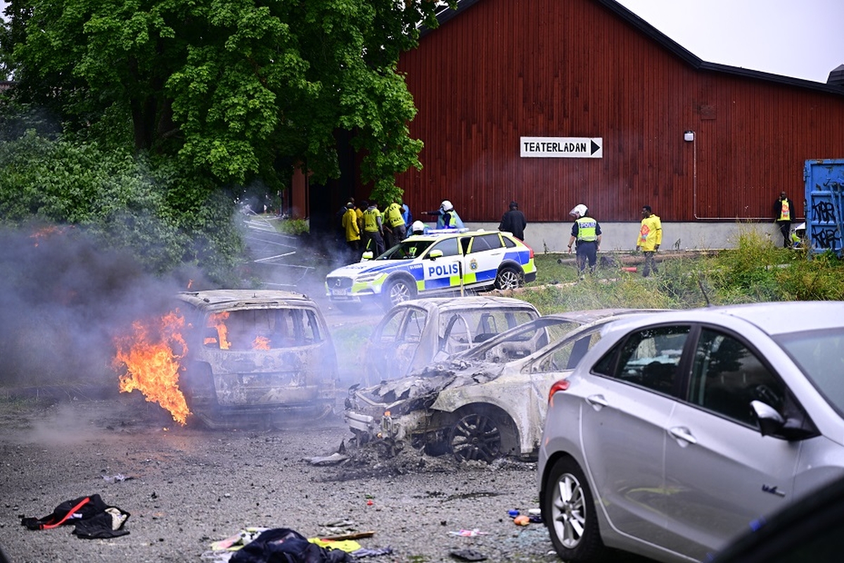 Policija liko budėti įvykio vietoje į šiaurės vakarus nuo Stokholmo esančiame priemiestyje, kad užkirstų kelią smurtui ir atkurtų viešąją tvarką.