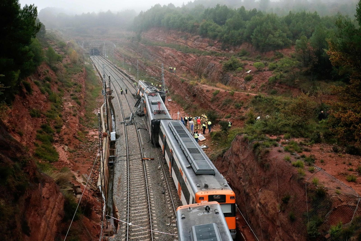 Tarp Manresos ir Barselonos kursavęs traukinys nuo bėgių nulėkė dėl nuošliaužos, įvykusios po kelias dienas tame regione pliaupusių smarkių liūčių, nurodė geležinkelių bendrovė „Adif“.
