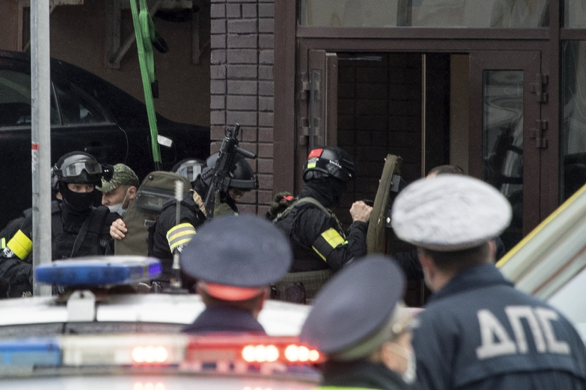 Pasak tyrėjų, šeštadienio popietę teisėsaugos institucijos gavo pranešimą apie įkaitų paėmimą banko pastate Zemlianoj Val gatvėje.
