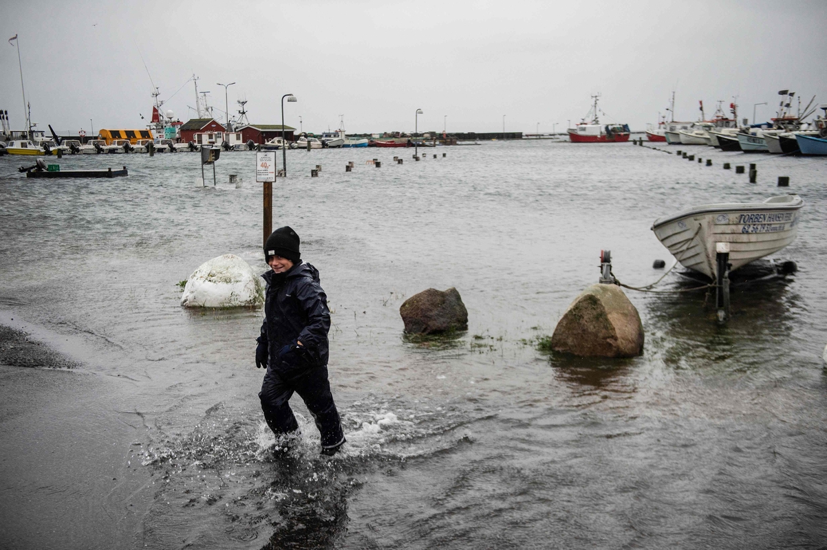 Stiprus gūsingas vėjas sukėlė bangas Baltijos jūros pietiniuose krantuose, sugriaudamas potvynių užtvaras Danijos ir šiaurės Vokietijos pakrančių vietovėse. Į pietus nuo sienos su Danija esančiame Vokietijos Flensburgo mieste vandens lygis pakilo daugiau nei du metrus nuo įprasto lygio, skelbia „dpa“.