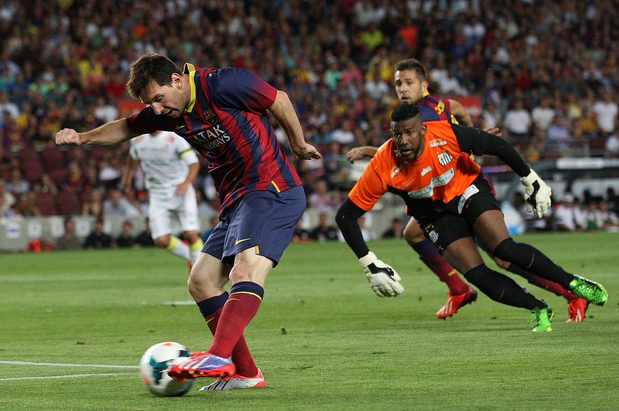 Netrukus nuaidi švilpukas ir mačas prasideda. Jau per pirmąsias 20 min. įsitikiname, kad „Santos“, kuriame užaugo geriausias visų laikų futbolininkas Pele ir jo įpėdiniu jau vadinamas Neymaras, nutarė negadinti šventės. Leo varžovus maudo kuokštais, jo partneriai tvarkosi po vieną. Įvarčiais tiesiog lyja. Muša kas tik nori, išskyrus tą, kuriam labiausiai reikia. Tačiau publika Neymarą palaiko tarsi savo sūnų, tad ir šis nenukabina nosies. Jo tėvynainiai taip retai pereina aikštės vidurį, kad tampa aišku – įdomiausia vakaro dalis jau baigėsi. Daugiau nei po valandos žaidimo išvystame jau 7-ąjį įvartį į „Santos“ vartus ir mandagiai atsisveikiname.