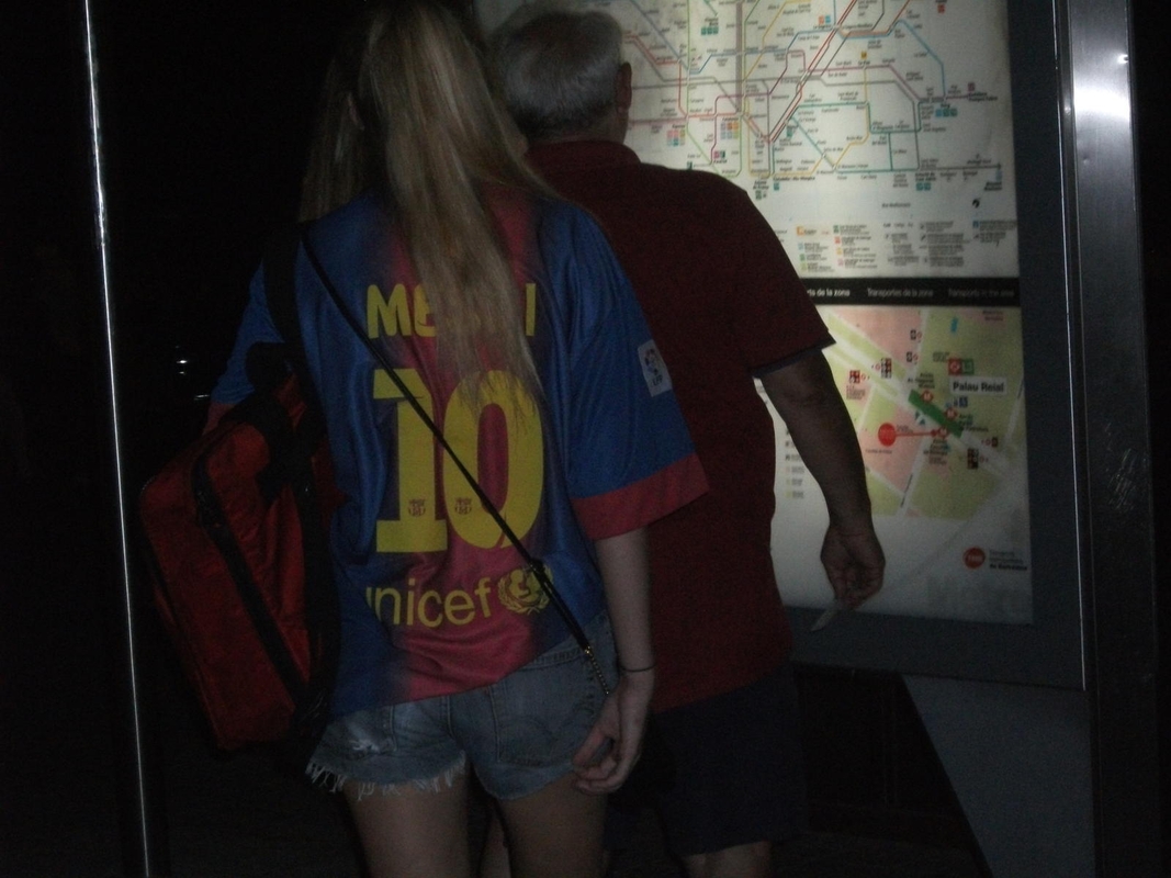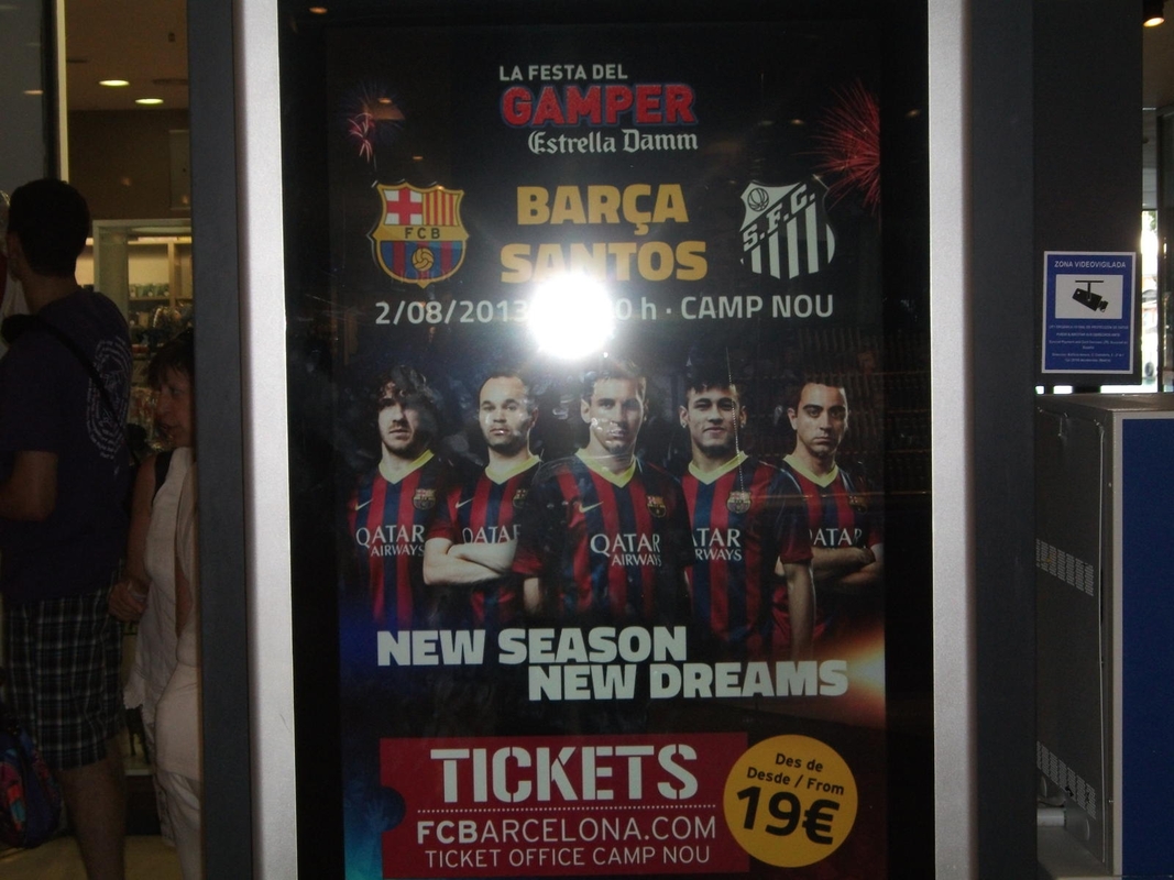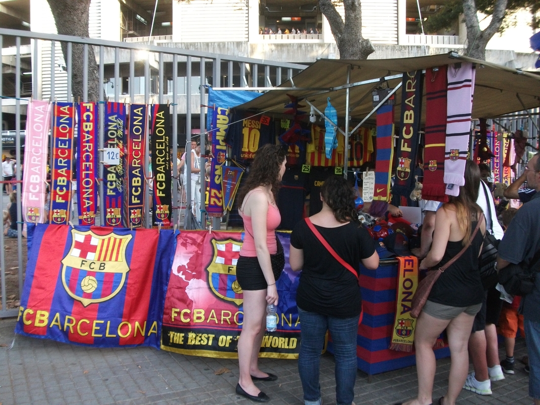 Norint suspėti į traukinį reikia ištrūkti anksčiau nei pagrindinis srautas. Pakeliui praeiname vieną iš keliolikos „Barca“ atributikos parduotuvėlių. Juose originalius klubo varžybinius marškinėlius nusipirksi už maždaug 100 eurų (345 litus). Šaligatvius nusėdę afrikiečiai taip pat atrodančią, bet, matyt, vienkartinę ekipuotę siūlo 5 kartus pigiau ir dar siūlo derėtis. Tik kad man nereikia nei vienų, nei kitų.
