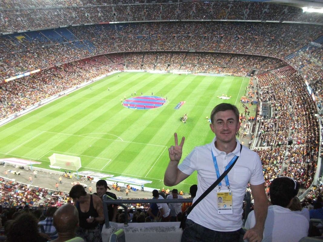 Su nedidele lietuvių, neseniai viešėjusių pasaulio vandens sporto šakų čempionate, grupele nedvejojome – patekti į „Camp Nou“ – mūsų garbės reikalas. Juolab, kad tarp rekordinių Rūtos Meilutytės startų atsirado laisva diena. Kaip tik tą rugpjūčio vakarą „Barcelona“ rengė triukšmingą komandos bei sezono pristatymą, mače dėl Joano Gampero taurės sukryžiuodama ietis su legendiniu Brazilijos klubu „Santos“. Kaip vėliau paaiškėjo, iš „Santos“ tik legenda ir liko. Tačiau mums tai mažai terūpėjo.