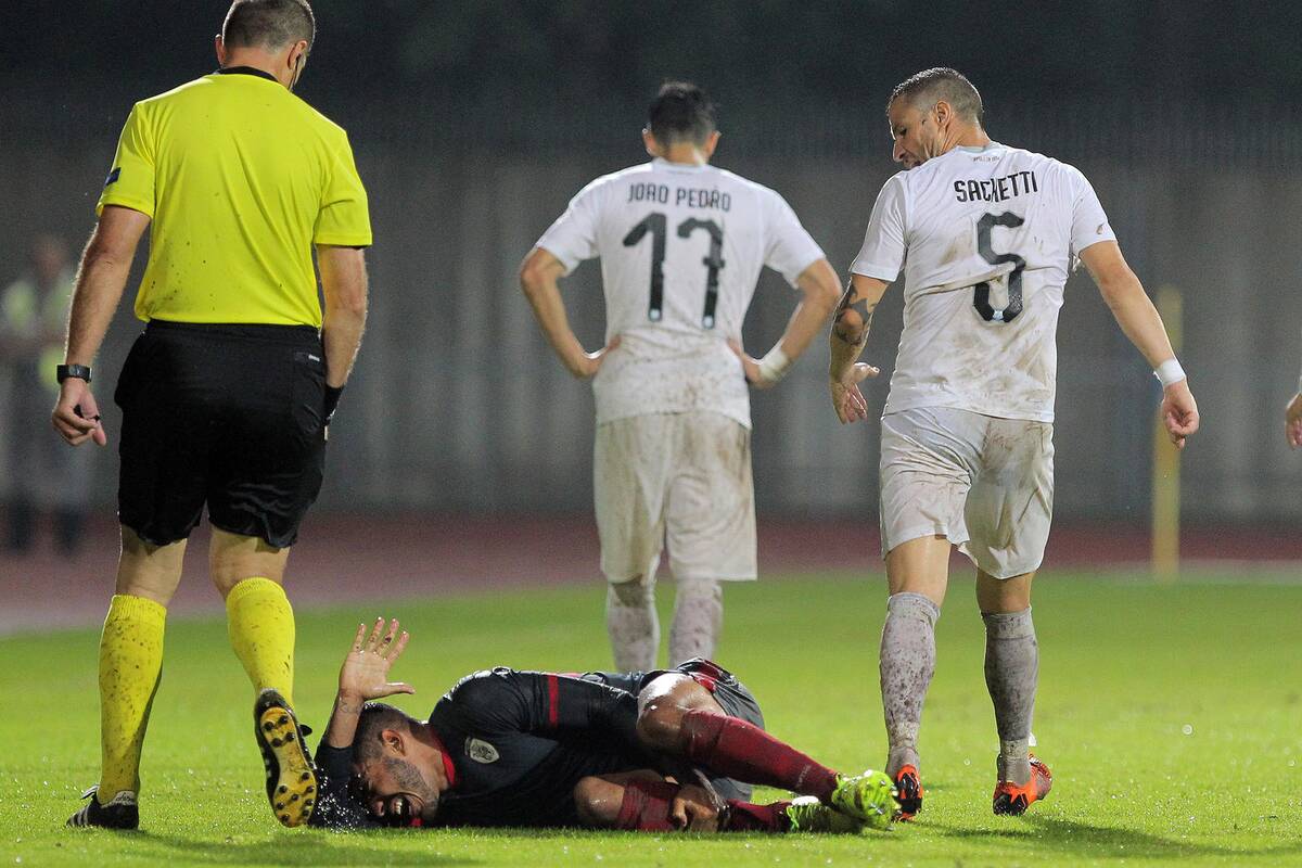28-ąją minutę teisėjo iš Gruzijos Georgijaus Vadachkorijos kantrybė galiausiai baigėsi. Arbitras sustabdė rungtynes ir pasitaręs su abiejų komandų atstovais, nusprendė jas nutraukti ir padaryti pertrauką.
