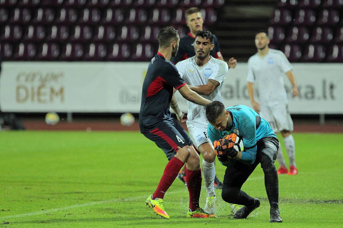Pirmajame atrankos etape kauniečiai Alytuje susitiko su Kipro vicečempionu Limasolio „Apollon“. Dvikova buvo sustabdyta po pusvalandžio dėl nepaprastai stiprios liūties, bet praėjus valandai ir lietui aprimus mačą nuspręsta tęsti. Kai atrodė, kad abi komandos išsiskirs lygiosiomis, pagrindinio laiko paskutinę minutę nustebino puikų reidą surengęs gruzinas Levanas Mačarašvilis. Jo vienintelis įvartis lėmė netikėtą kauniečių pergalę 1:0.