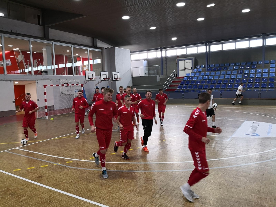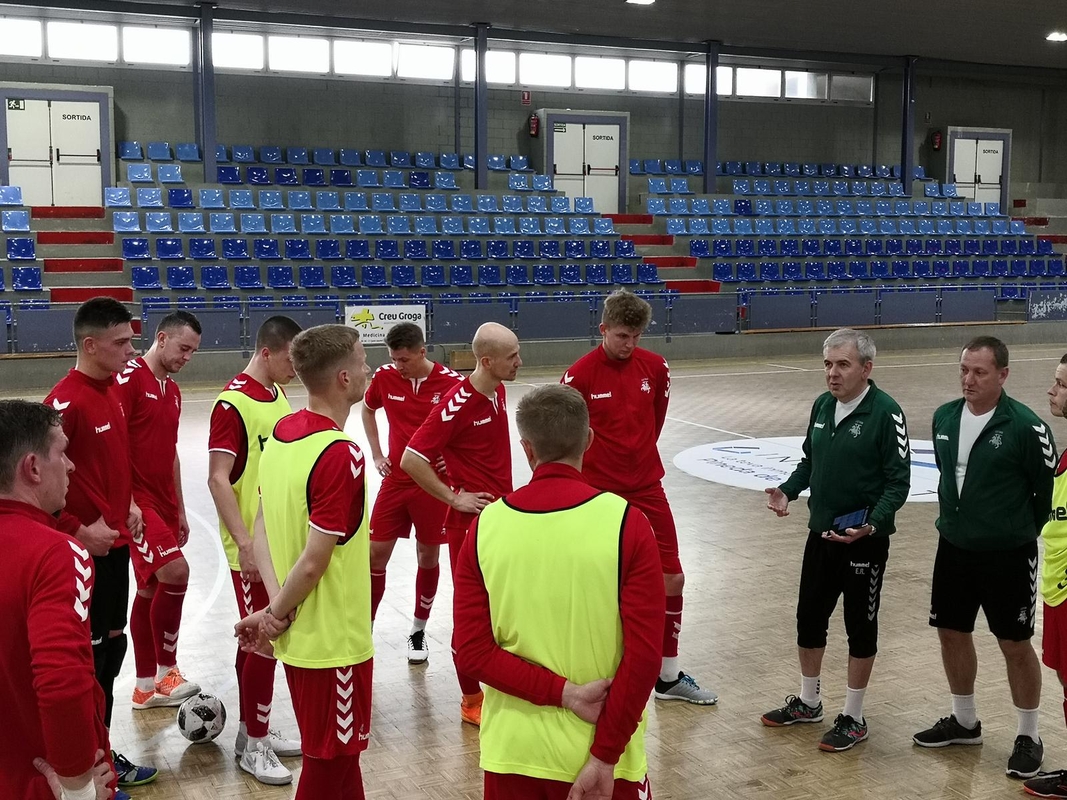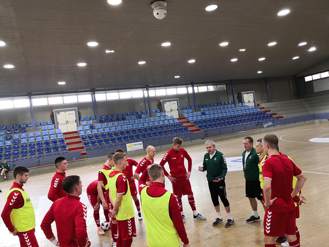 Stovykloje Ispanijoje dalyvauja šie Lietuvos salės futbolininkai: Mindaugas Labuckas, Ernestas Macenis, Vladimiras Derendiajevas, Benas Spietinis, Justinas Zagurskas, Lukas Sendžikas, Albertas Voskunovičius, Deividas Reimaris, Aurimas Skurdelis, Darius Jankauskas, Artūras Juchno, Janas Cimuškevičius, Arsenijus Buinickis, Jurijus Jeremejevas. Vyriausiajam treneriui Jevgenijui Ryvkinui talkina jo asistentai Kirilas Krasii ir Donatas Gražulis, futbolininkų sveikata rūpinasi kineziterapeutai Aurimas Tilindis bei Zigmas Komaras, o kelionės bei organizacinius klausimus sprendžia LFF atstovai Robertas Valikonis ir Jaroslavas Bojarskis.