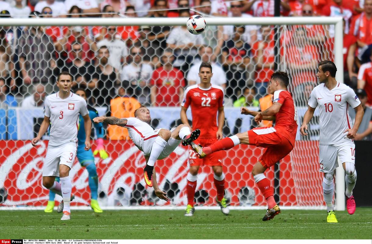 Pirmajame kėlinyje Jakubas Blaszczykowskis (39 min.) išvedė lenkus į priekį, o antrajame kėlinyje rezultatą išlygino Xherdanas Shaqiri (82 min.).