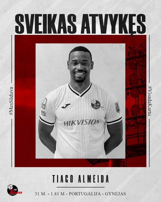 Marijampolės „Sūduva“ pasirašė sutartį iki 2022 metų sezono pabaigos su dešiniojo krašto gynėju Tiago Almeida.