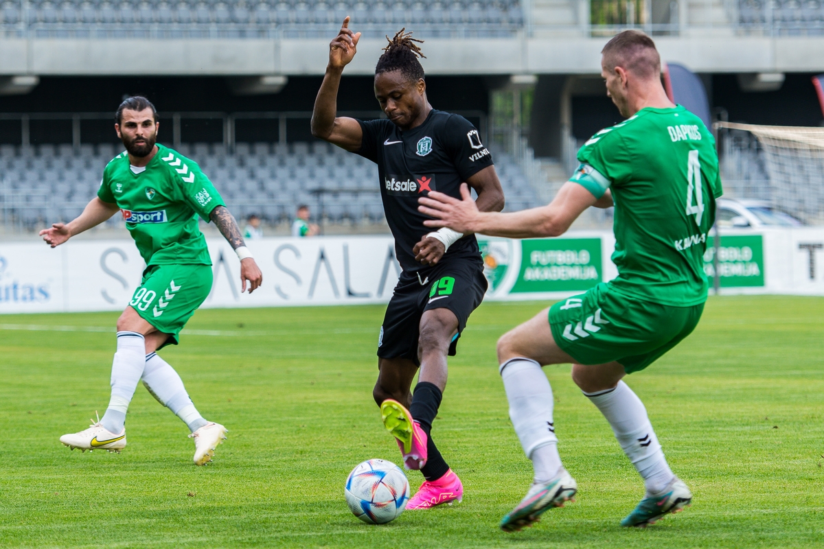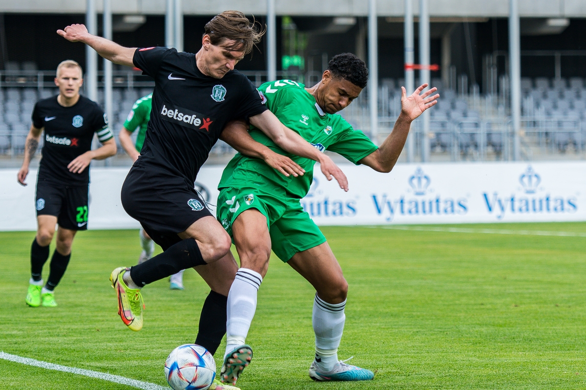Nuo pat rungtynių pradžios solidžiai dvikovoje atrodę kauniečiai į priekį išsiveržė pirmojo kėlinio pabaigoje, kai 37-ąją minutę pasižymėjo aikštėje po keitimo pasirodęs prancūzas Rosario Latouchent’as.