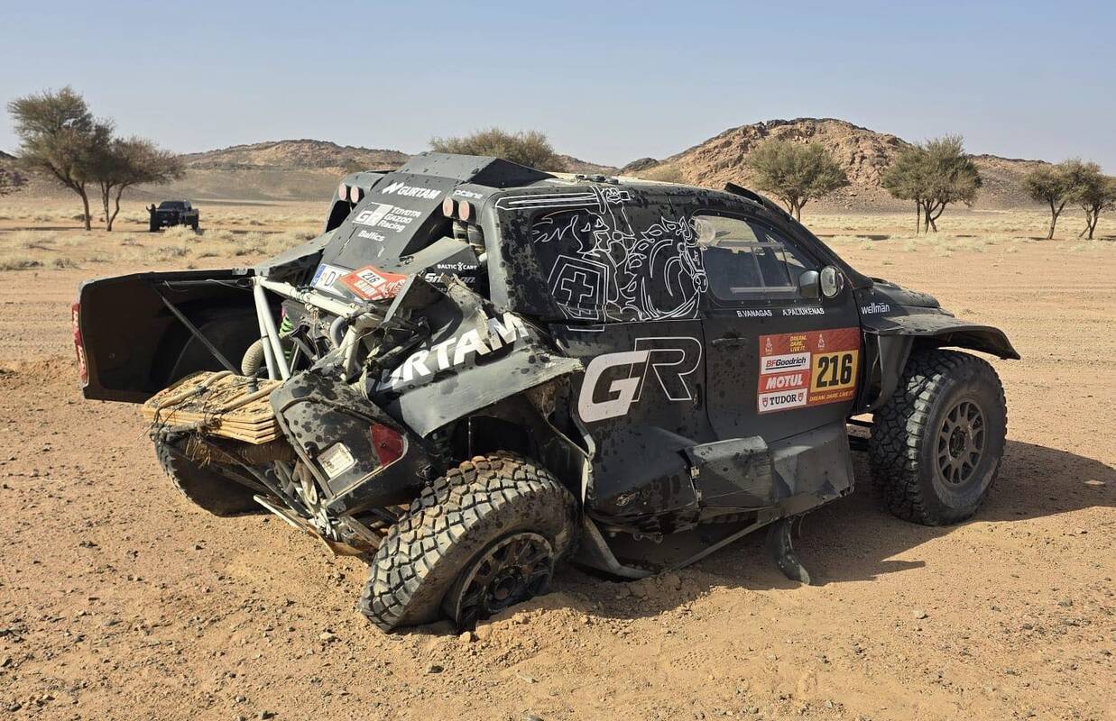 „Iki penkto etapo greičio ruožo pabaigos likus 16 km, pataikėme į dvi nepažymėtas vandens išgraužas. Lėkėme apie 160 km/val. greičiu, tad nebuvo šansų tinkamai sustabdyti visureigį. Viena iš išgraužų šveitė mus į orą, į kitą trenkėmės kaip į sieną. Tada jau tapome tik keleiviais“, – vakar mintimis apie lemtingą incidentą dalijosi „Gurtam Toyota Gazoo Racing Baltics“ lenktynininkas B. Vanagas.