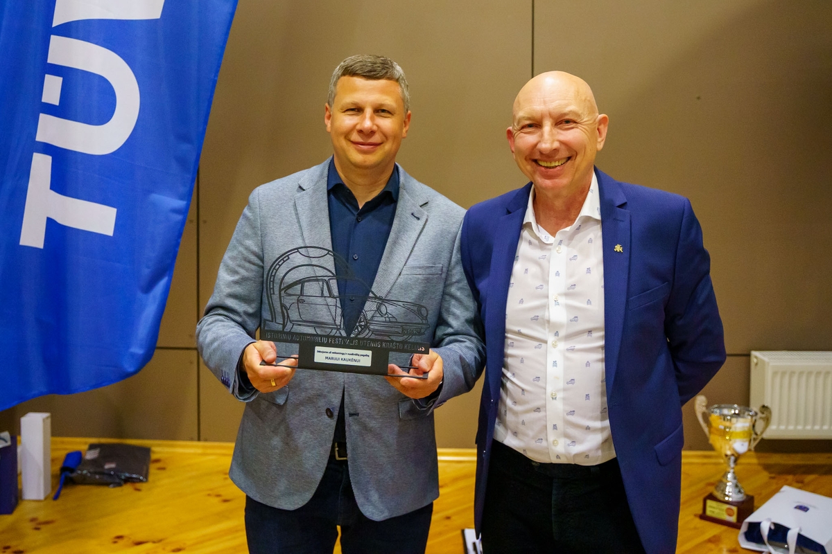 D. Sidaravičius „TÜV Nord“ taurę įteikė pirmiesiems jos laimėtojams – Ignui Giedraičiui ir Matui Mikulėnui, vairavusiems prabangųjį „Jaguar XJS“.