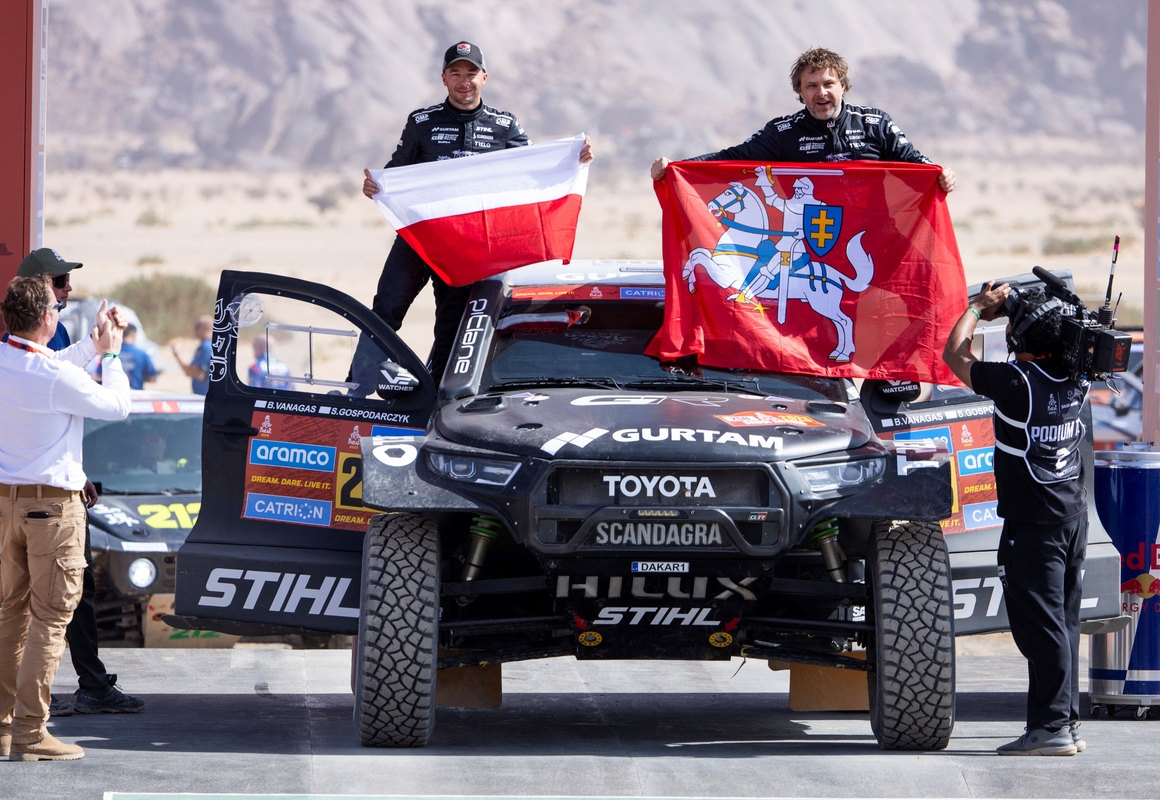 Ekipažas: ant starto podiumo – B. Vanagas (dešinėje) su šturmanu S. Gospodarczyku. / „Scanpix“ nuotr.