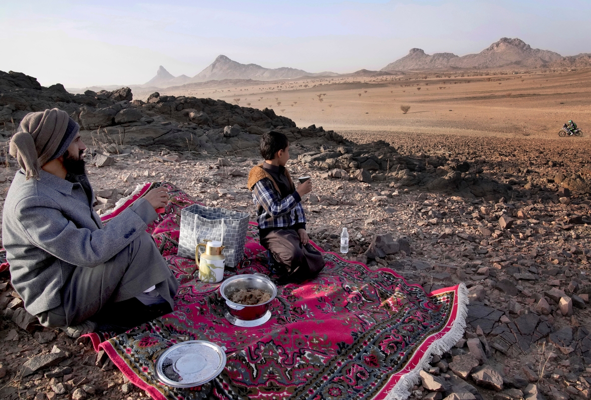 Pramoga: vietos gyventojai lenktynes stebėjo nuo aukštumų, įsitaisę ant kilimo. / „Scanpix“ nuotr.