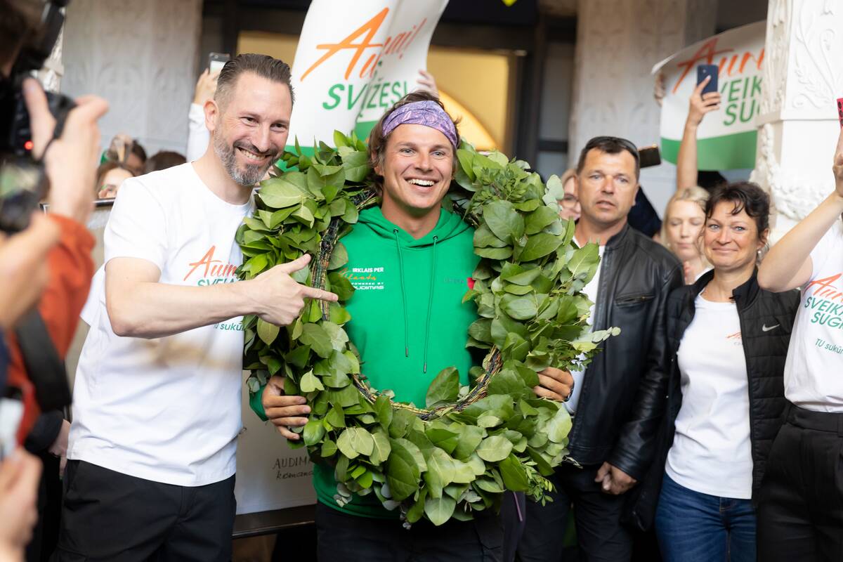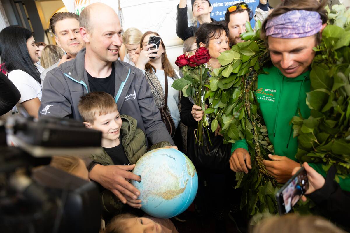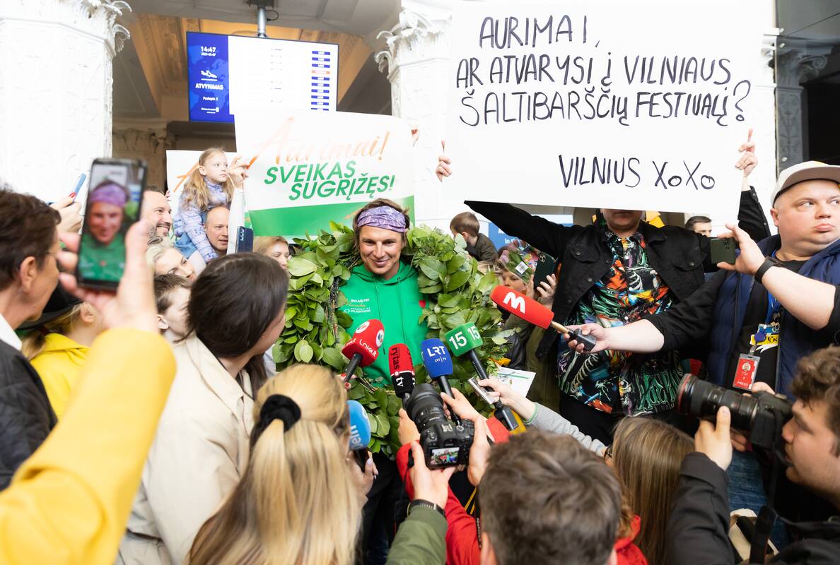 Aurimą pasitiko ne tik daugybė gerbėjų, bet ir mama, su ašaromis akyse. „Klausė, kaip man sekėsi Atlante. Tėvams yra per daug dėmesio“, – sakė keliautojas.