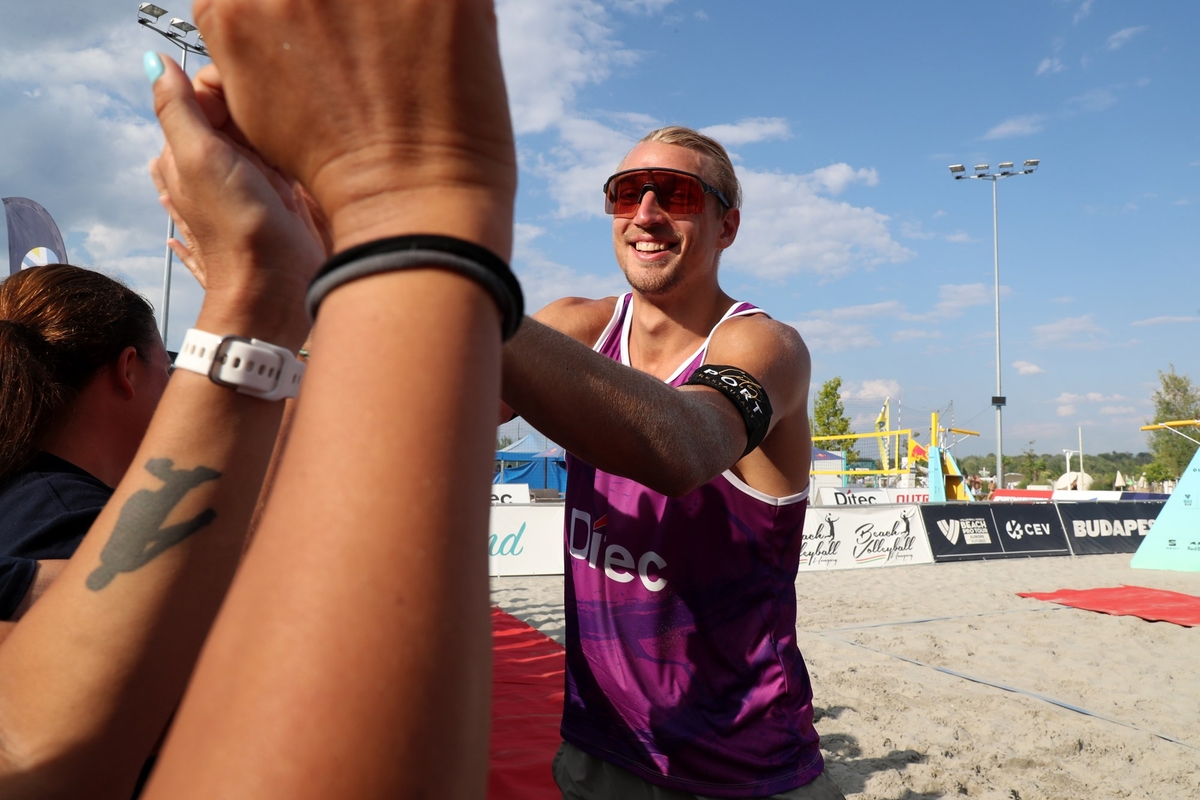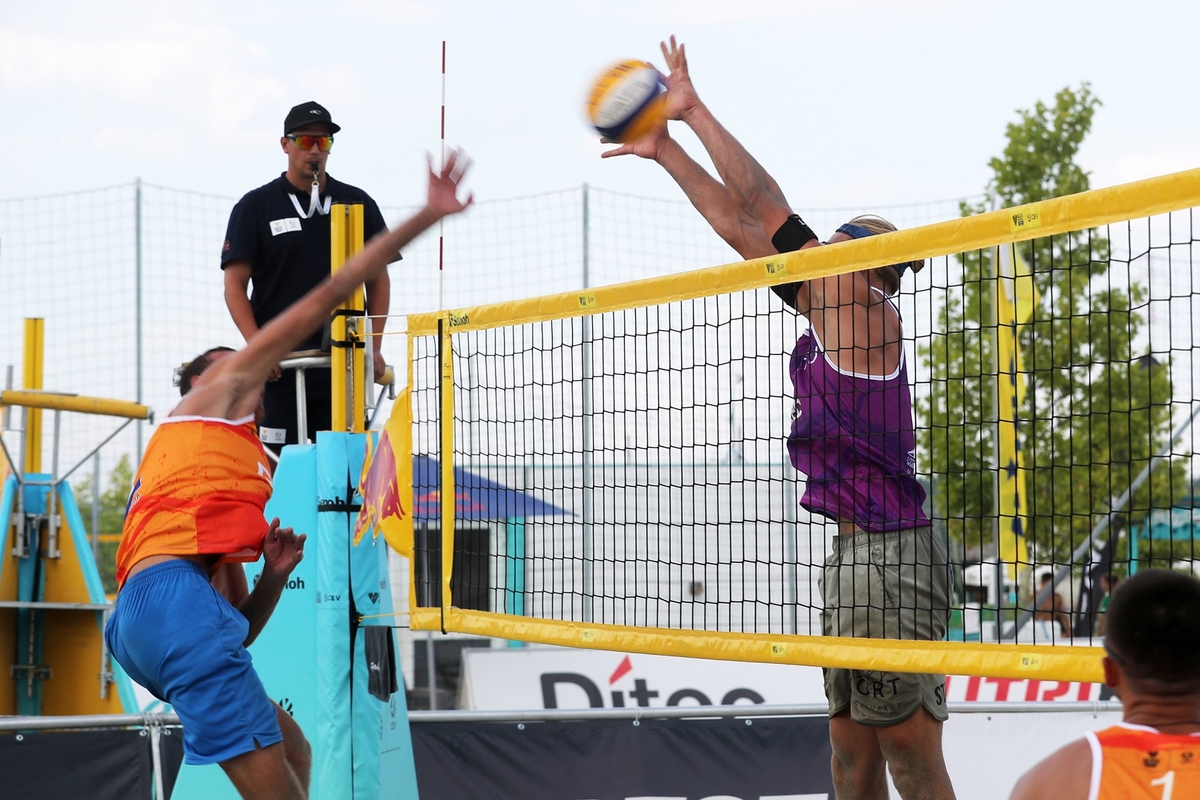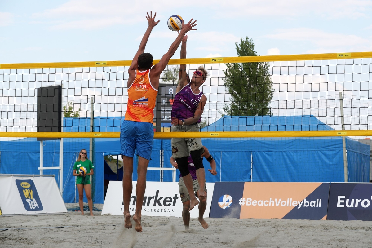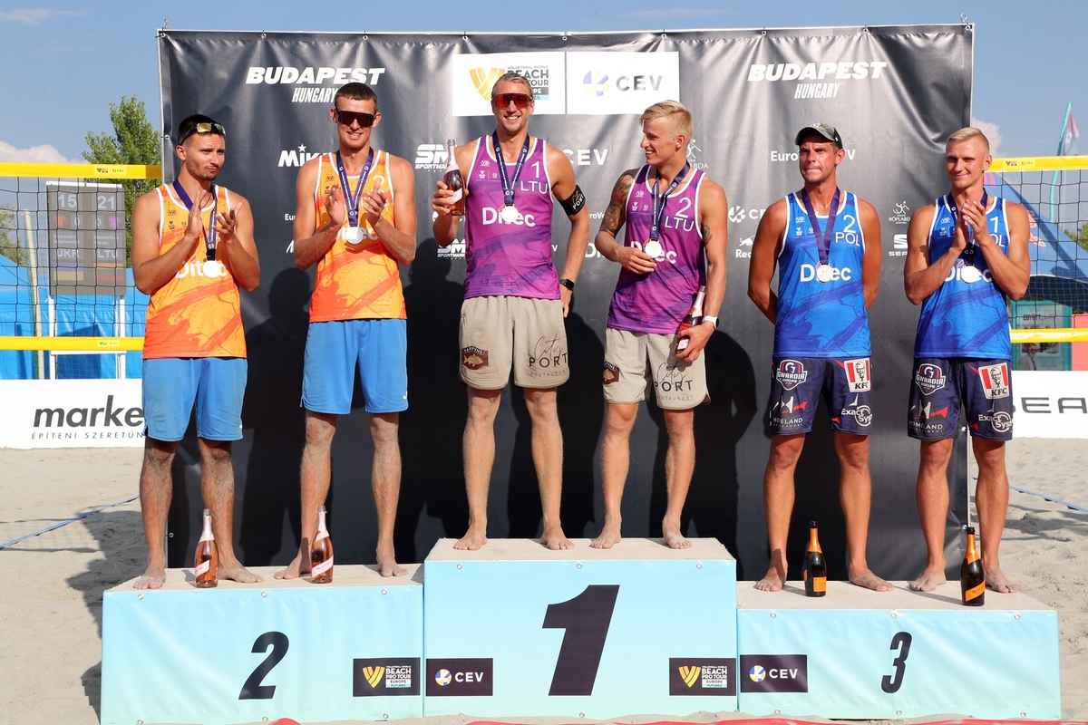Turnyro Vengrijoje pusfinalyje lietuviai po ypač dramatiško pirmo seto 2-0 (27:25, 21:14) palaužė lenkus Piotrą Janiaką ir Jedrzejų Brozyniaką.
