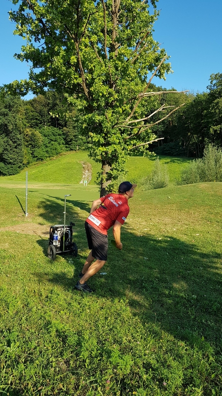 Antrasis prieš pietus startavo Darius Gricius, besivaržantis 40+amžiaus grupėje. Jis taip pat sužaidė šiek tiek geriau nei pirmąją dieną ir pasiekė rezultatą 66 (+6). Tai jam leido tarp 24 dalyvių pakilti į 22-ąją poziciją. Nepaisant ne itin aukšto rezultato, D. Gricius ketvirtadienio varžybose pasižymėjo išskirtiniu metimu - į krepšį nr.8 (81 m atstumu) pataikė pirmu metimu.