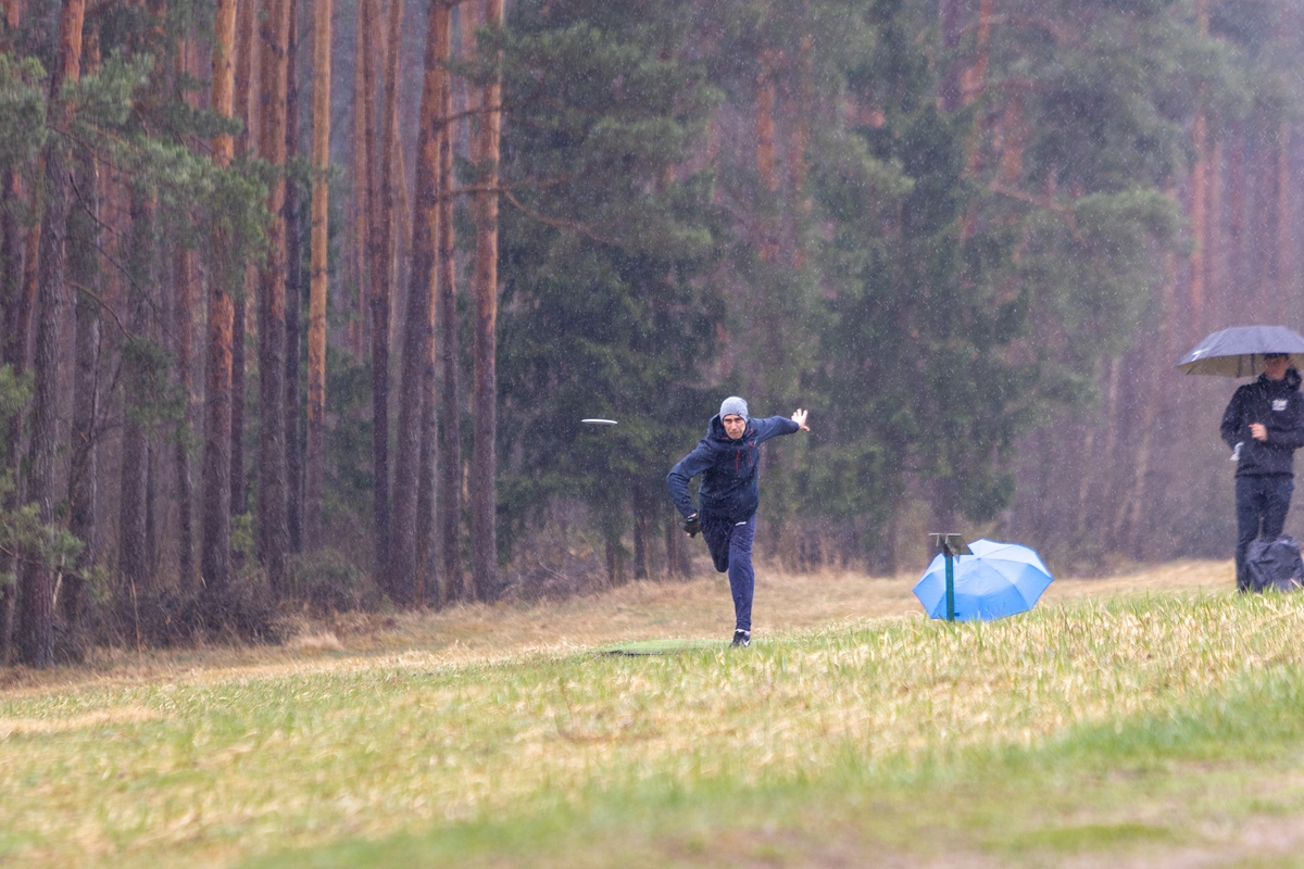 Orai šiais metai Lietuvos diskgolfo taurės negaili. Jeigu pirmame etape turėjome kovoti su pastoviu ir didžiuliu vėju, tai trečiasis etapas buvo kardinaliai kitoks, bet ne ką mažiau blogas. Vėjo nebuvo, tačiau lietus lijo nuo pat ankstyvo ryto iki vakaro, kol pasibaigė varžybos. Visi sportininkai tiesiogine ta žodžio prasme buvo tarsi po maudynių. Šlapi iki ausų galiukų.