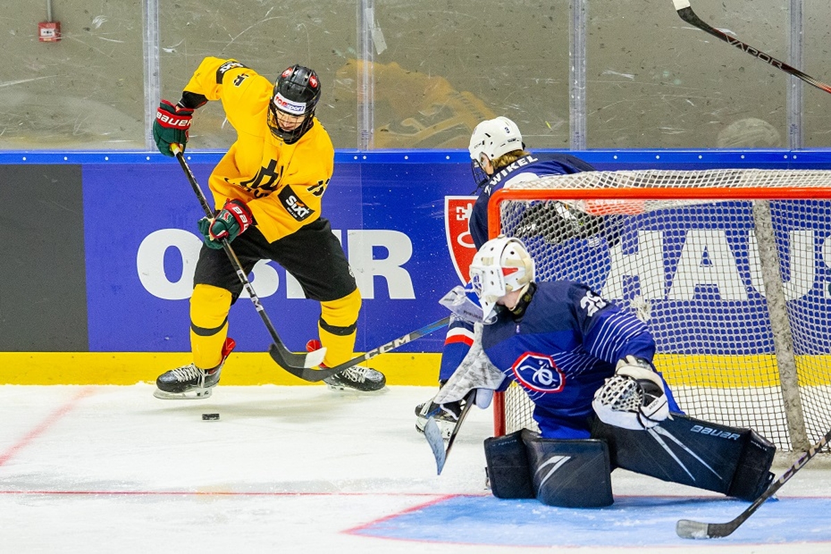 Jau pirmojo kėlinio viduryje įvartį pelnė Simas Ignatavičius (06:39), o kėlinio pabaigoje taiklų metimą pridėjo ir Dominykas Jukna (16:53), po Mato Avsejenko ir Dovydo Šulinsko perdavimų. Lietuviai pirmajame kėlinyje buvo priekyje 2:1, tačiau antrame praleido du įvarčius – vieną iš jų daugumoje – ir rezultatas persvėrė prancūzų naudai.