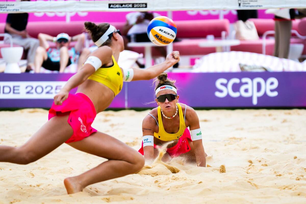 JAV paplūdimio tinklininkės pirmosiose rungtynėse 2-0 (21:19, 21:18) įveikė australes Jasmine Fleming ir Stefanie Fejes.