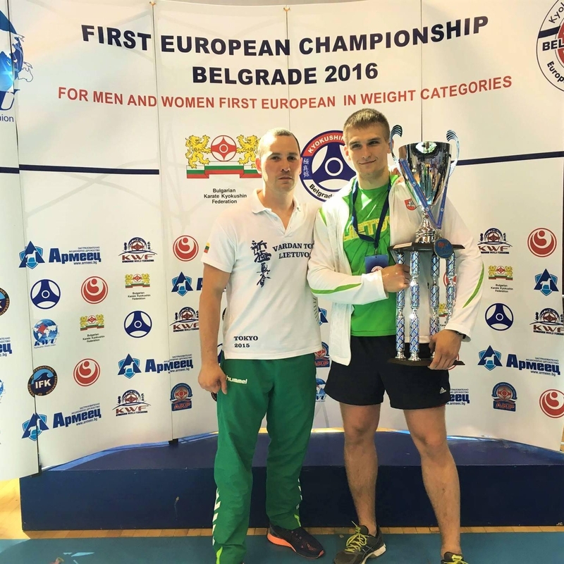 Naujausią, beveik metro aukščio taurę ir aukso medalį sportininkas parsivežė birželį iš Serbijos sostinės Belgrado, tapęs pirmą kartą surengto Pasaulio kiokušin karatė sąjungos (KWU) Europos čempionato nugalėtoju.
