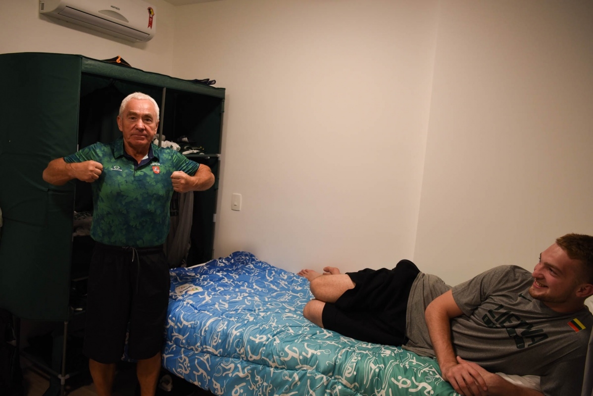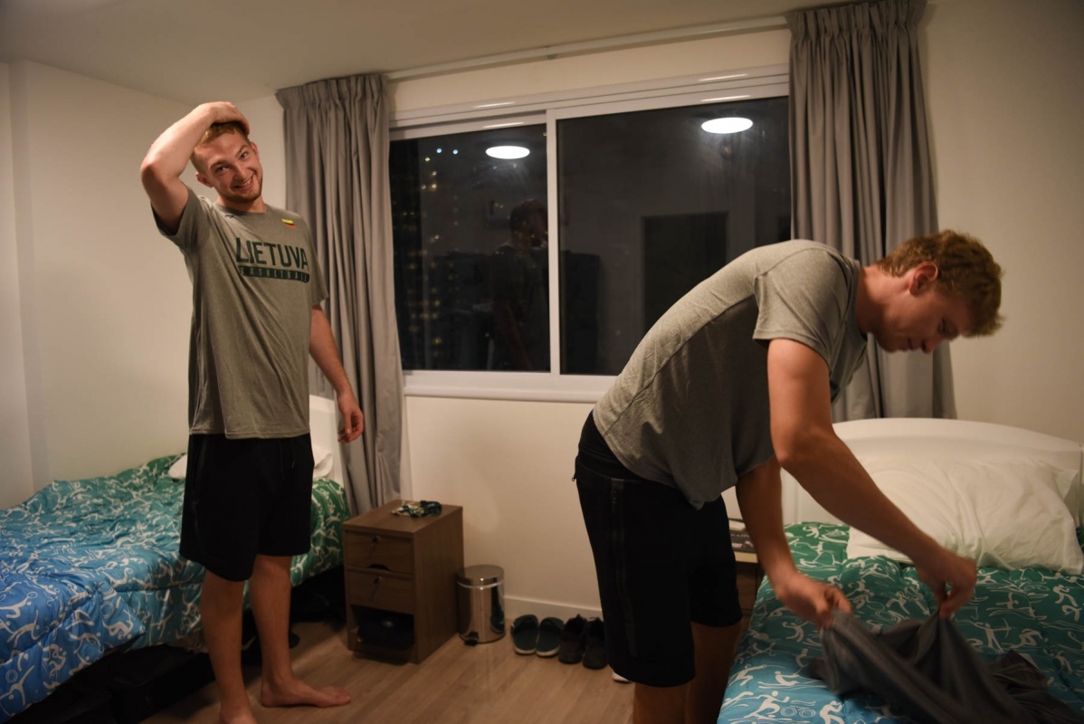 Krepšininkai kambariuose gyvena po du, gyvenimo sąlygomis yra patenkinti. Dviem sportininkams tenka dalintis viena nedidele spinta, tačiau, anot jų, tvarkingai sudėjus daiktus viskas spintose telpa.