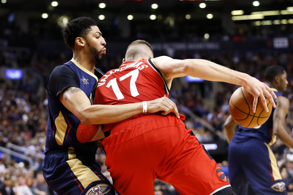 Vienas geriausių sezono rungtynių sužaidęs Jonas Valančiūnas po pratęsimo išvedė „Raptors“ į pergalę prieš Donato Motiejūno „New Orleans Pelicans“ 108:106 (23:25, 23:35, 31:15, 19:21, 12:10).