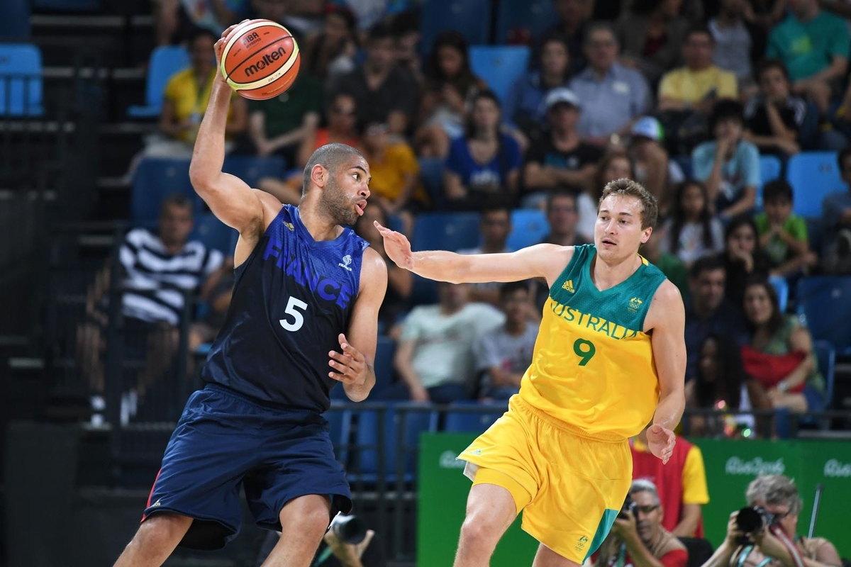 Šeštadienį pirmosiose šešių ekipų A grupės rungtynėse Australijos krepšininkai 87:66 (20:14, 16:19, 25:15, 26:18) nugalėjo Europos pirmenybių bronzos medalininkę Prancūzijos komandą.