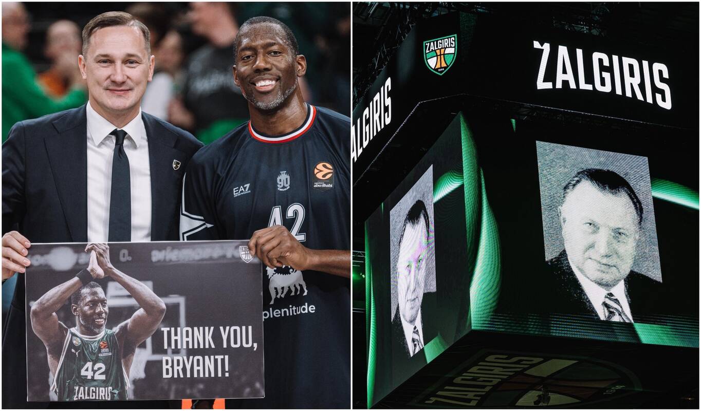 Pagerbė: „Žalgirio“ klubo prezidentas Paulius Jankūnas padėkojo Bryantui Dunstonui, praeitą sezoną žaidusiam Kauno komandoje, arenoje prisimintas ir buvęs legendinis žalgirietis bei treneris Stepas Butautas – šiemet jam būtų sukakę 100 metų.