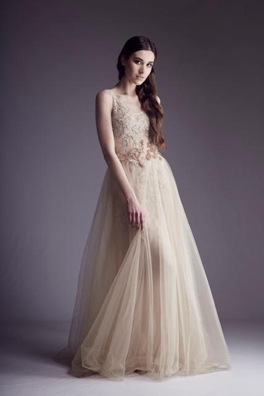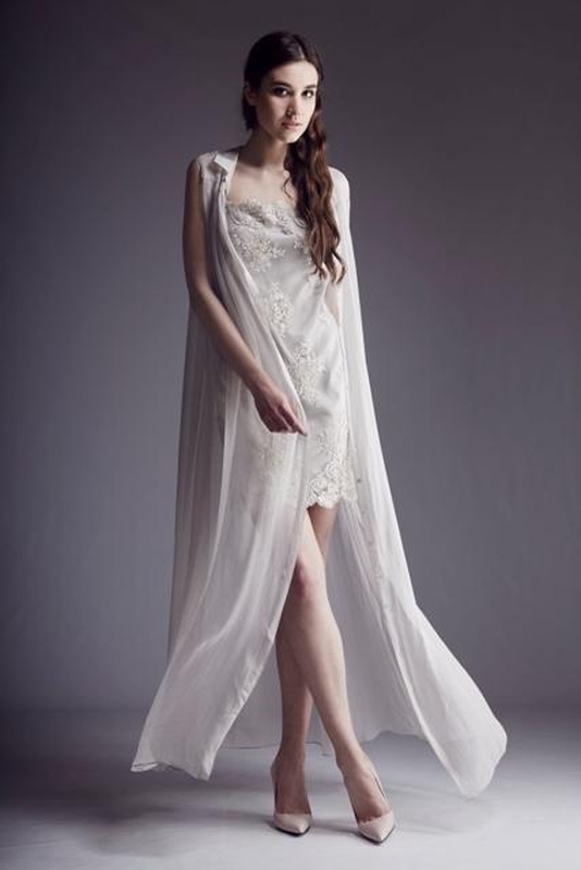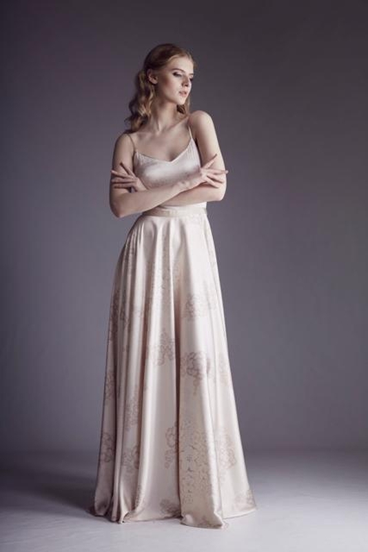 Jeigu vestuvių pokylis ypač iškilmingas, dizainerė rekomenduoja šventės metu dėvėti ilgą, grindis siekiančią suknelę. Prabangūs nėriniai bei trapūs gėlių karpiniai, pražydę ant krūtinės suteikia rafinuoto moteriškumo.