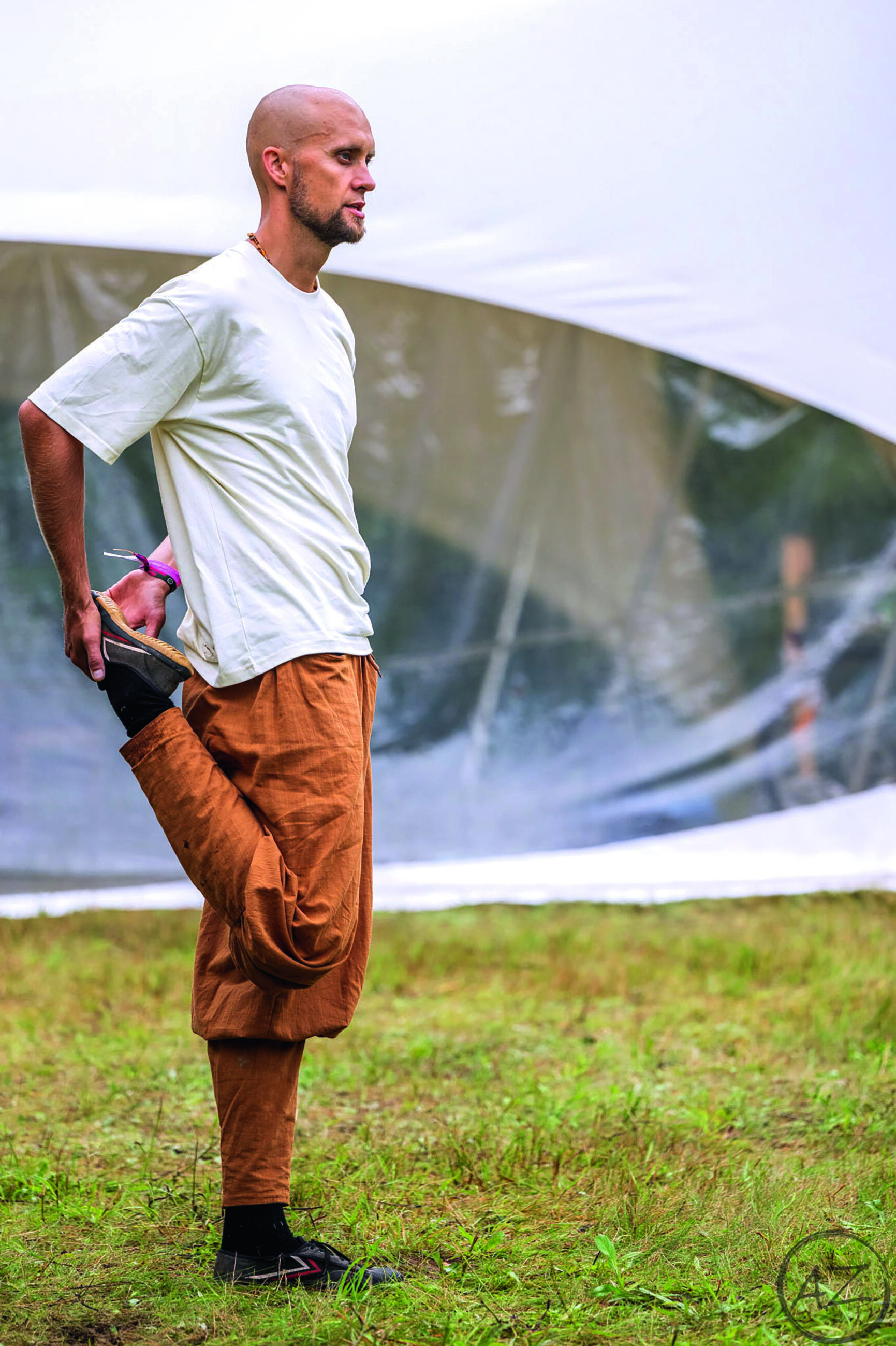 Su Ta­du su­si­pa­žįs­ta­me ma­giš­ko­je vie­to­je – „Auk­si­nė­je gi­rio­je“, są­mo­nin­gu­mo fes­ti­va­ly­je „Mas­ters of Calm“. Su­do­mi­na jo ry­ti­nės pra­kti­kos – kung fu ir či­gon­go tre­ni­ruo­tės. Vy­ras pri­si­pa­žįs­ta ką tik su­grį­žęs iš Šao­li­no vie­nuo­ly­no Vo­kie­ti­jo­je, kur gy­ve­no ir mo­kė­si dau­giau nei me­tus, – ieš­ko­jo kū­ną ir dva­sią trans­for­muo­jan­čių pa­tir­čių.
