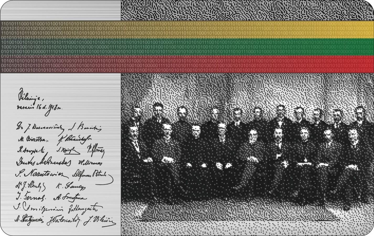 "Istorinę ir daug kam iš vadovėlių pažįstamą Lietuvos Tarybos nuotrauką pamėginau pateikti šiuolaikiškai – ją suskaitmenindamas. Nuotrauka sudaryta iš daugiau nei 36 500 pikselių – maždaug tiek, kiek dienų praėjo nuo Vasario 16-osios akto pasirašymo", – sako skaitmeninės kolekcinės monetos dizainą sukūręs dailininkas Giedrius Paulauskis.