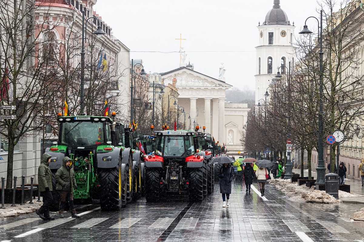 ELTA primena, kad ketvirtadienį Vilniuje tęsiasi į sostinę traktoriais suvažiavusių ūkininkų protestas. Akcijos dalyviai antrą dieną protestuoja prie Vyriausybės.