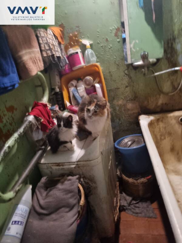 Pasak VMVT, tualete, vieno kvadratinio metro plote, laikytos dvi katės, vonios kambaryje aptikta viena suaugusi katė ir penki kačiukai. Maitinimo indai visuose narvuose ir patalpose buvo tušti, kraiko dėžės perpildytos išmatų.