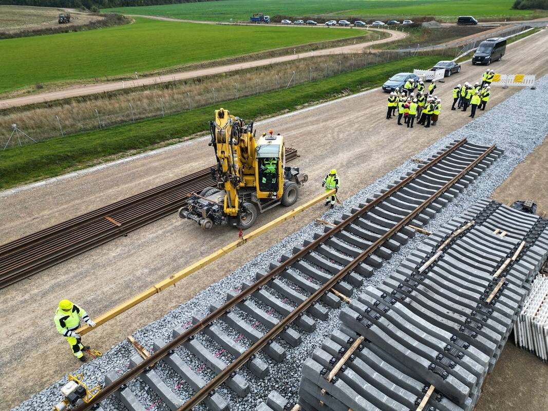 Viršutinės kelio konstrukcijos įrengimo (bėgių statybos) „Rail Baltica“ ruože Šveicarija–Žeimiai konkursą viešojo pirkimo būdu laimėjo ir rangos darbų sutartį su „LTG Infra“ pasirašė jungtinės veiklos partneriai „Leonhard Weiss GmbH & Co. KG“ iš Vokietijos ir „Leonhard Weiss OÜ“ iš Estijos. Sutarties vertė siekia 16,8 mln. Eur (su PVM).