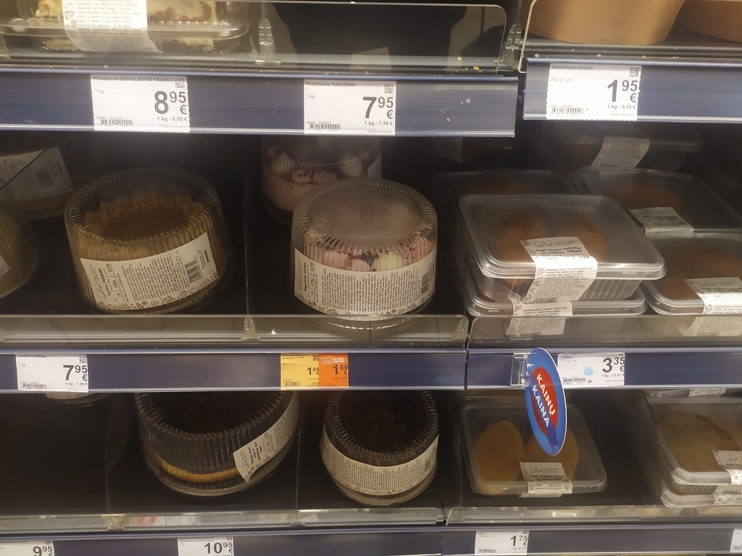 „Pas jus dar nieko. Man tai stipriai neatitiko kaina“, – nuotraukomis dalijosi Daiva. Ji užfiksavo, kaip prie tortų lentynos parašyta kaina išties priverčia stebėtis, nes yra itin nedidelė – nesiekia net dviejų eurų. Pasirodo, kad kaina ne torto, o garstyčių.