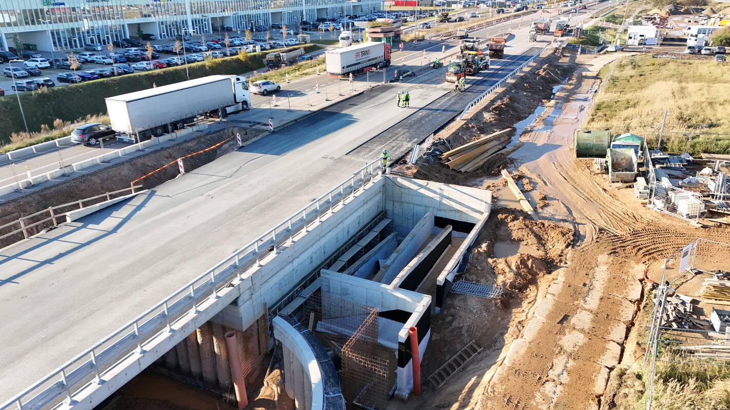 Siekiant kuo aukštesnių kokybės rezultatų, nuolat atliekami kontroliniai bandymai, tad vien pirmojo etapo 3 sluoksnių asfalto dangos įrengimas truko ilgiau nei 3 savaites. Pirmojo etapo darbams trukdė lietingi orai ir atrastos gruntinio vandens sankaupos, susidariusios dėl mažai laidžių molio ir dulkio sluoksnių žemėje. Dėl to, už atraminių tunelio sienų ir ramtų teko papildomai įrengti drenažo sistemas.