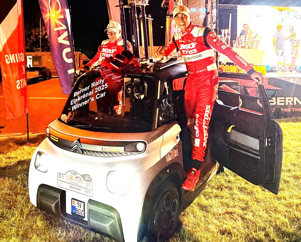 Latviams įteiktas specialus „Berner Rally Elektrėnai“ varžybų prizas – mikroautomobilis „Citroen Ami“.
