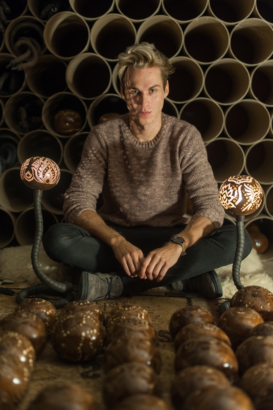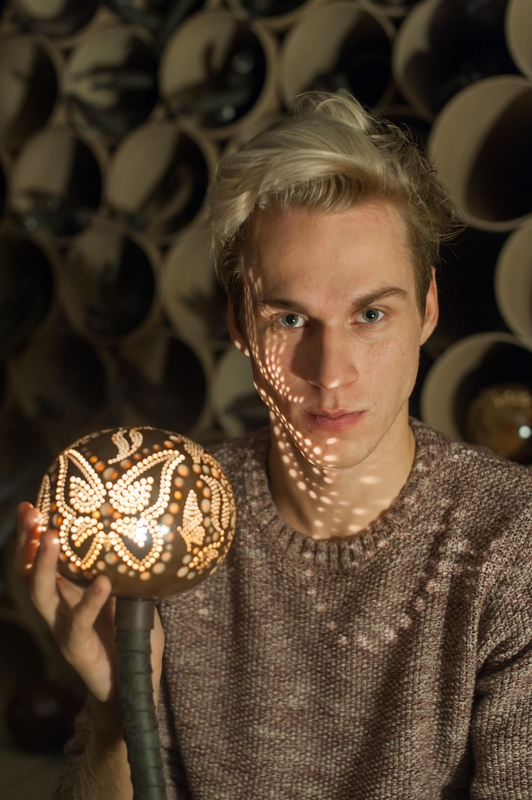 – Šią istoriją pasakoti teko daugybę kartų ir visuomet ją pradedu su pagarba ir dėkingumu vienam nuostabiam Lenkijos šviesos menininkui Przemekui, geriau žinomam Calabarte vardu. Jis, iš Afrikos parsigabenęs gigantiškų egzotinių vaisių calabashų, mėnesių mėnesius kuria vieną šedevrą ir parduoda pasaulio milijonieriams už įspūdingas sumas. Aptikęs straipsnį apie jį, pamečiau galvą dėl jo darbų. Negalėdamas sau leisti jų įsigyti, ėmiau pats gaminti savo šviestuvą, kuriantį šviesos meną. Buvo daug nesėkmių, vargo, bet galiausiai pavyko. Juokinga ir miela prisiminus, bet tai buvo tapę net jaunatviška obsesija. Kažkuriuo metu su Calabarte pradėjome susirašinėti. Vadinamųjų lempininkų bendruomenė nėra didelė, joje lengva užmegzti kontaktus, dalytis idėjomis, pagelbėti vieni kitiems. Jau beveik ketverius metus su šiuo kūrėju esame draugai, kartą per metus susitinkame.