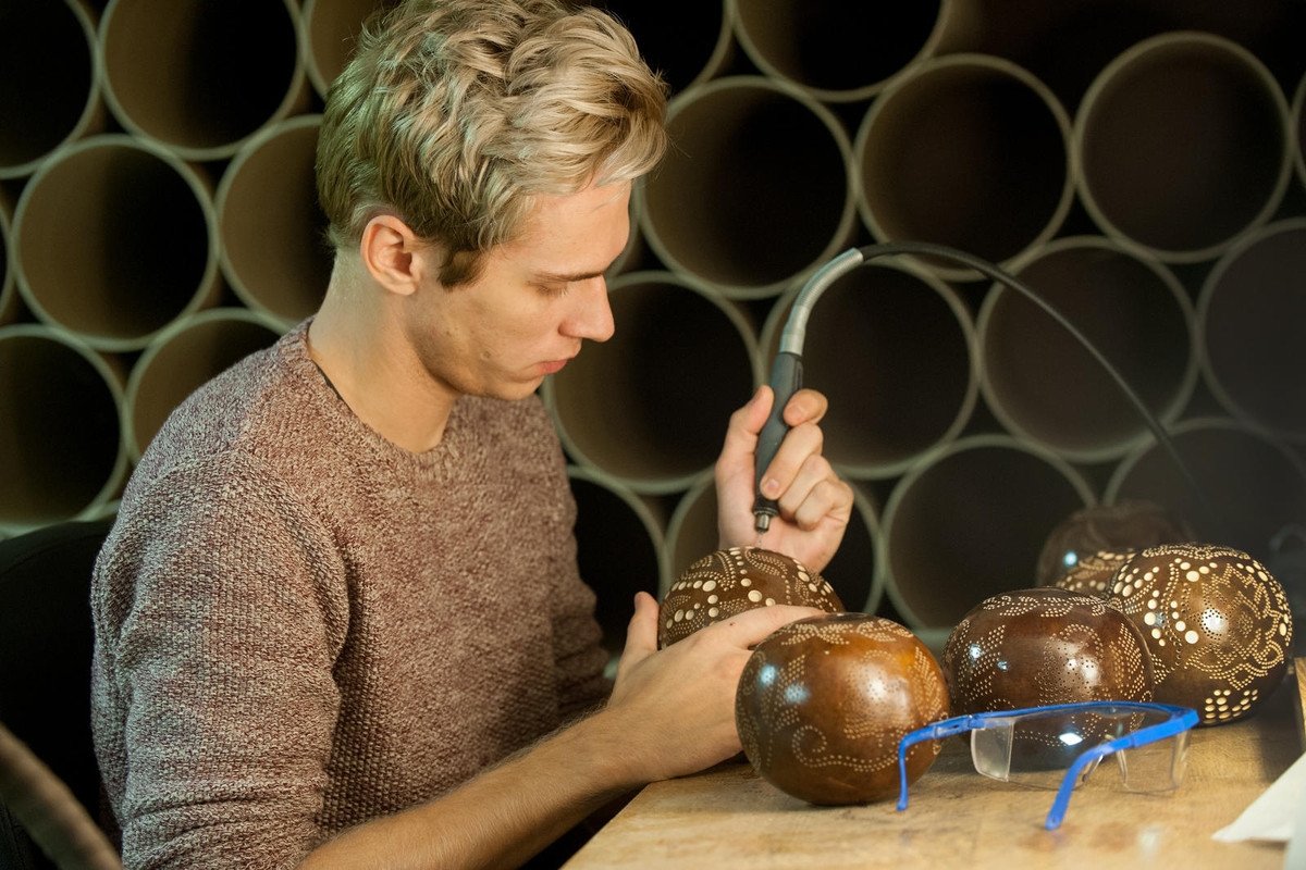 – Lempų gamyba iš kokoso prasidėjo netyčia. Jis tiesiog tiko tuo metu, kai dariausi šviestuvą sau. Visada norėjau jį pakeisti kita medžiaga. Su kokosu labai sunku dirbti – jis be galo kietas, tad gręžimas vargina, be to, iššūkis rasti išties dailų, apvalų ir didelį riešutą, ypač kai jų reikia daug. Į Lietuvą atkeliauja maži ir deformuoti, nes juk ne kokoso kiauto išvaizda rūpi maisto pirkėjams. Todėl, atradęs tinkamų džiovintų moliūgų, labai džiaugiausi. Dideli, dailiai apvalūs ir lengvai apdirbami jie atvėrė didesnių kūrybos galimybių.